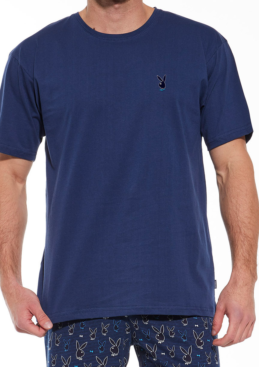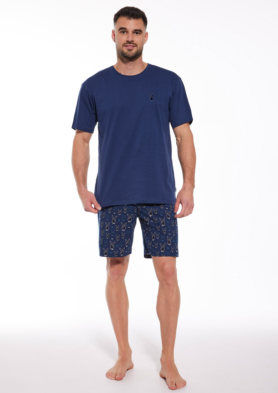 Pánske pyžamo s krátkym rukávom a krátkymi nohavicami vyrobené z úpletu zo 100% bavlny.