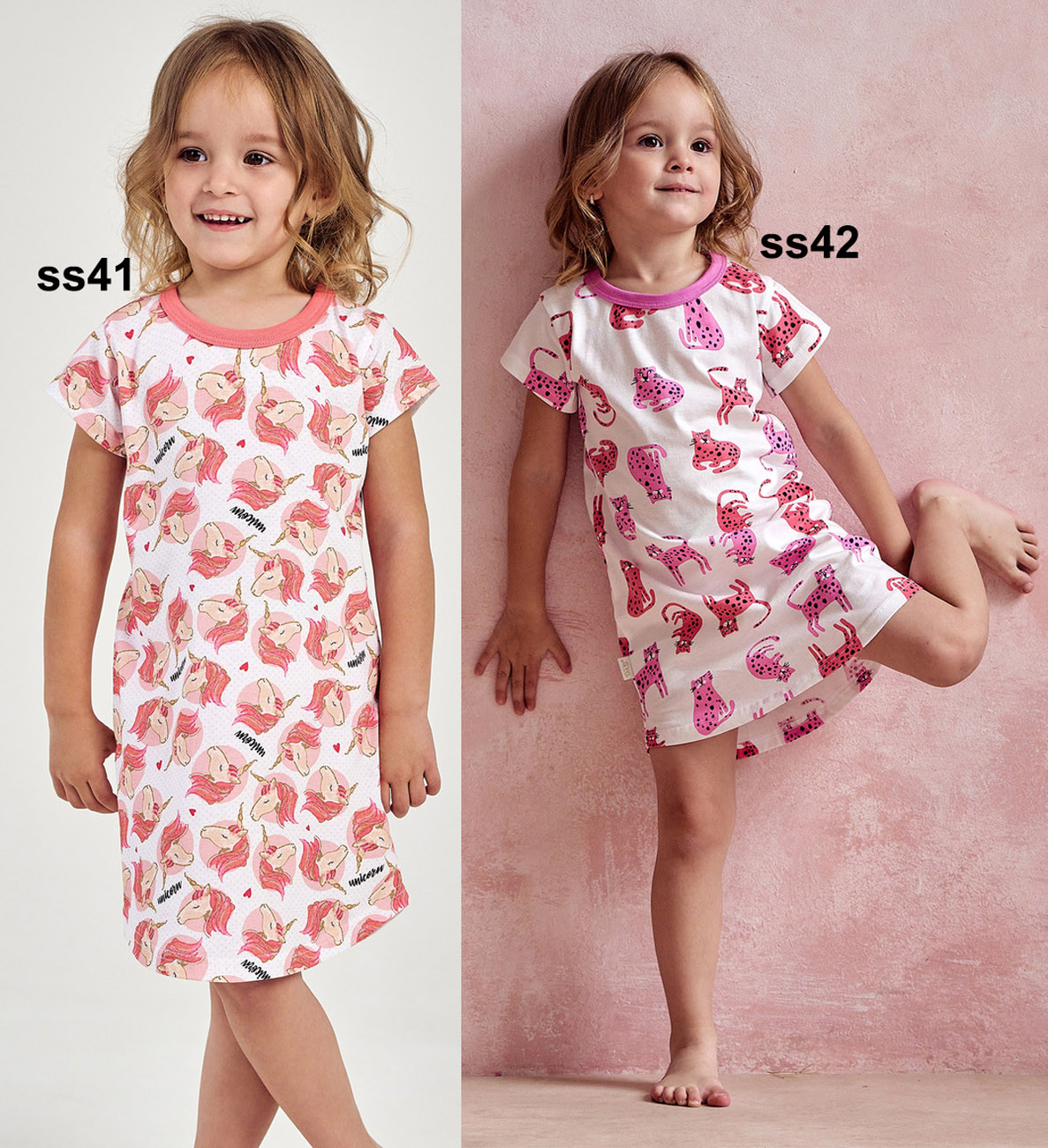 Dievčenská nočná košeľa s krátkym rukávom vyrobená z úpletu zo 100% bavlny.