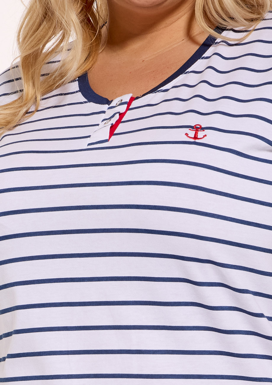 Dámska nočná košeľa s krátkym rukávom a krátkou rozopínacou légou vyrobená z úpletu zo 100% bavlny.