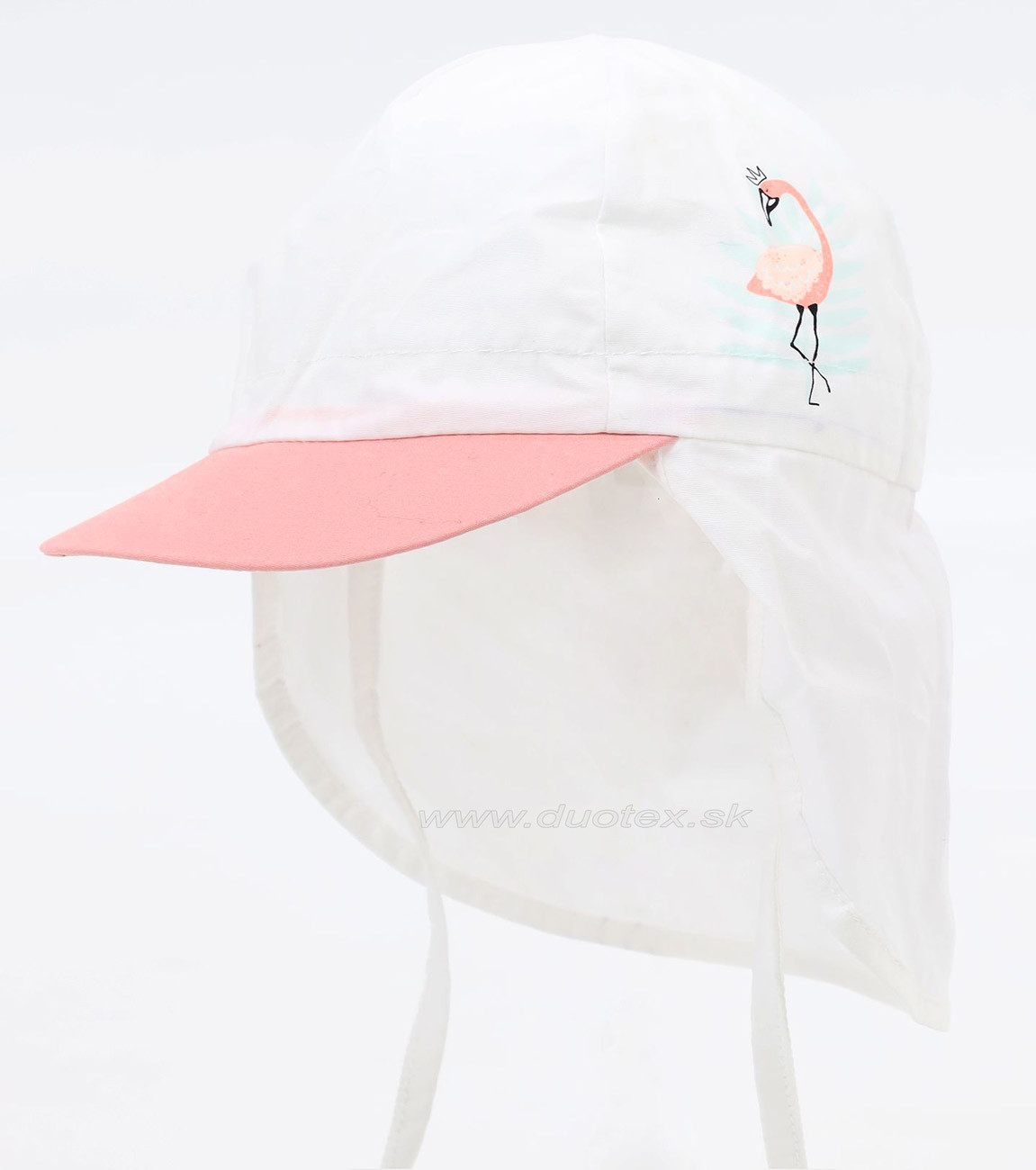 Detská letná čiapka so šiltom a predĺženou zadnou časťou na ochranu krku a časti ramien. Šiltovka je vyrobená z ľahkej tenkej bavlnenej tkaniny.