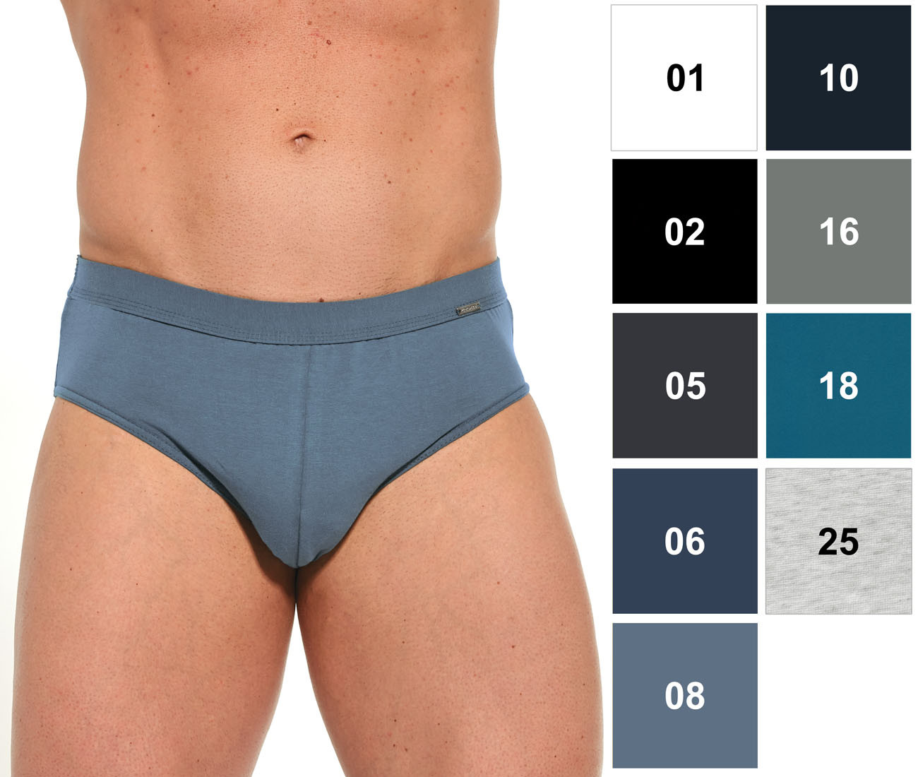 Pánske slipy vyrobené z veľmi kvalitnej bavlny. Vďaka elastanu sa ideálne prispôsobia postave a poskytujú tak maximálny komfort a pohodlie pri nosení. Model má ploché švy a v páse má všitú pohodlnú širokú gumu obšitú bavlneným úpletom.