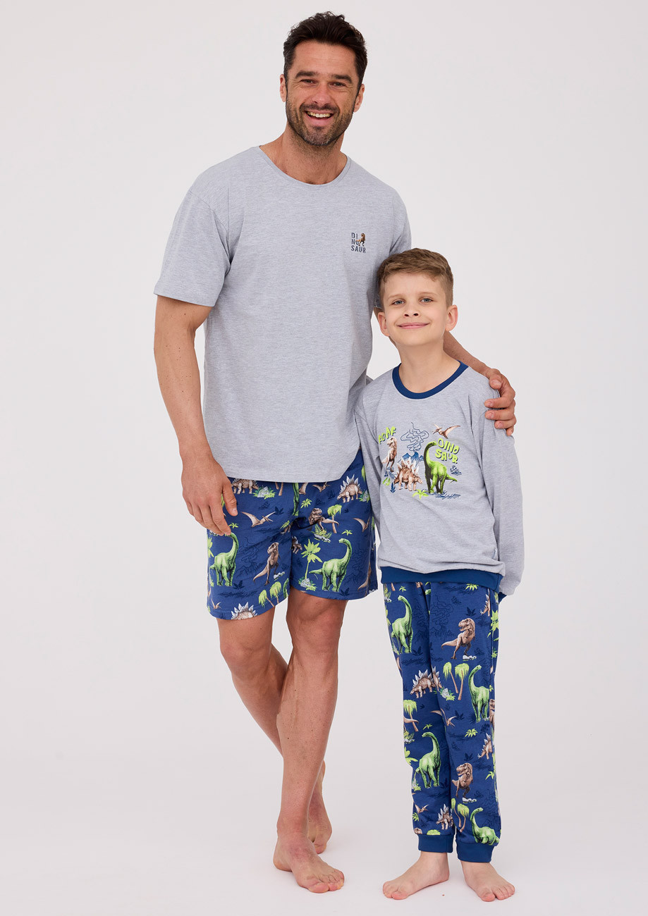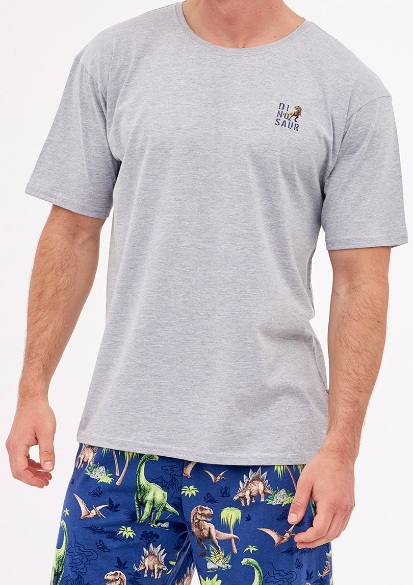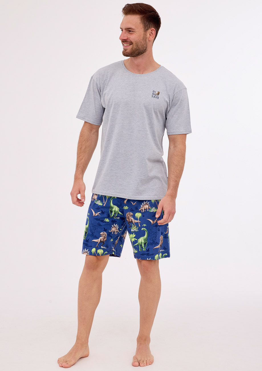 Pánske pyžamo s krátkym rukávom a krátkymi nohavicami vyrobené z bavlneného úpletu. Pyžamo patrí do kolekcie ,,Dinosaur"