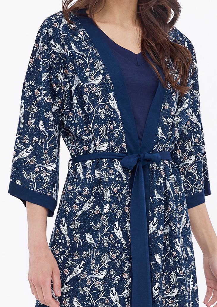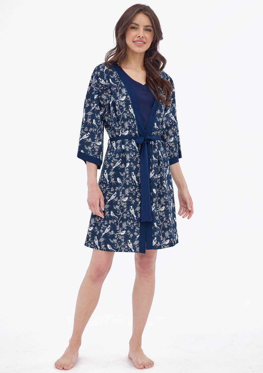 dámsky krátky zavinovací župan vyrobený z tenkého bavlneného úpletu zo 100% bavlny