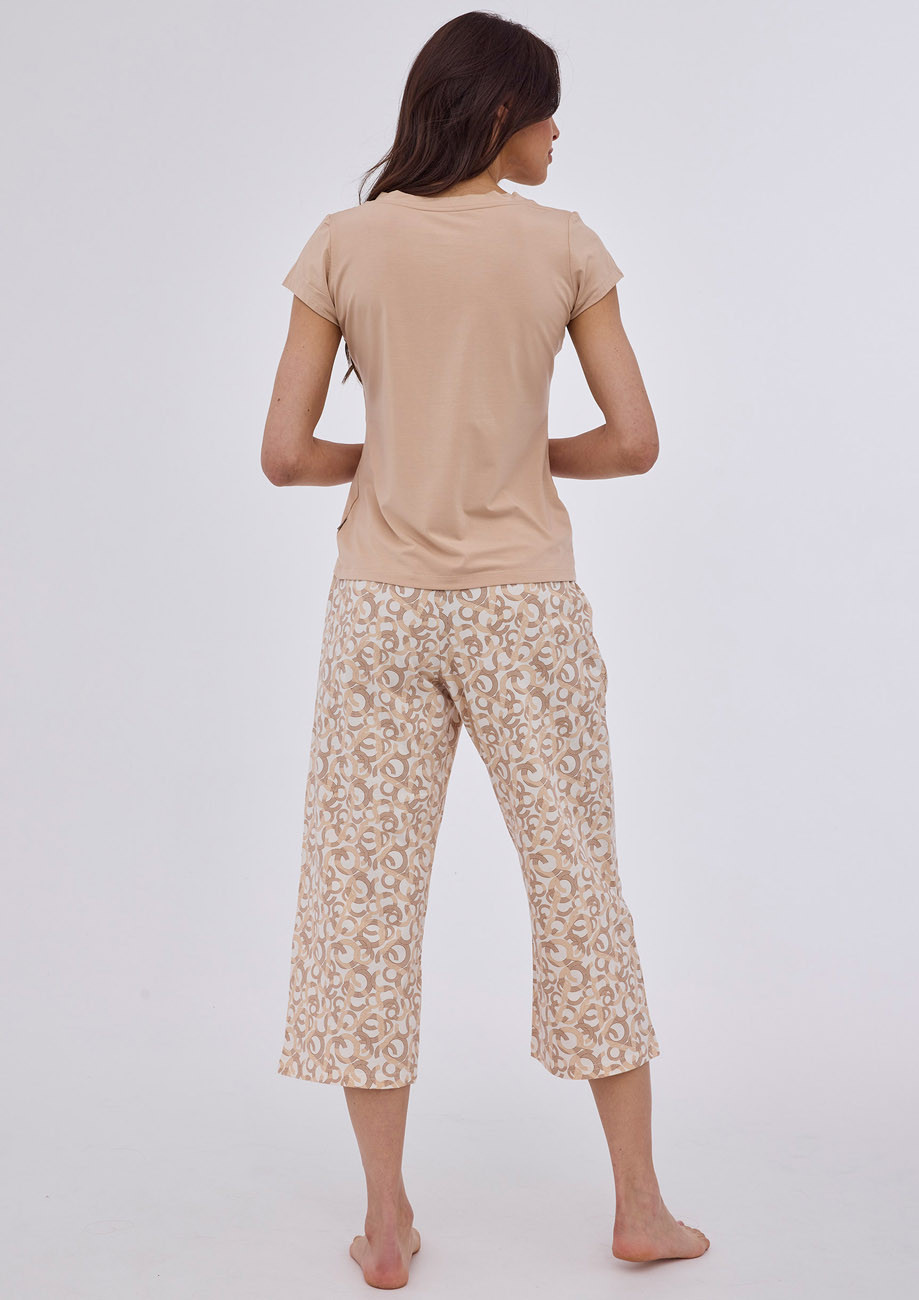 Dámske pyžamo s krátkym rukávom a 7/8 nohavicami vyrobené z úpletu z bavlny a príjemného modalu jemného na dotyk
