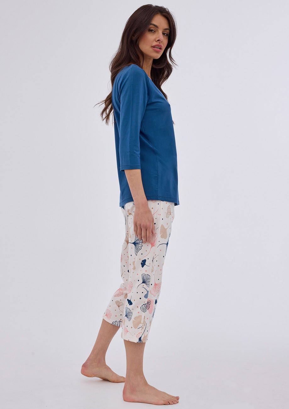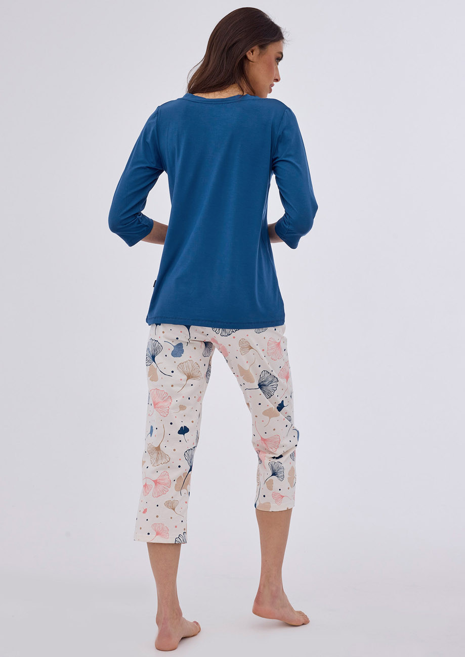 Dámske pyžamo s 3/4 rukávom a 7/8 nohavicami vyrobené z úpletu z bavlny a príjemného modalu jemného na dotyk