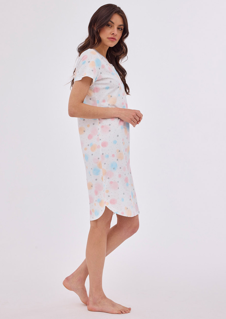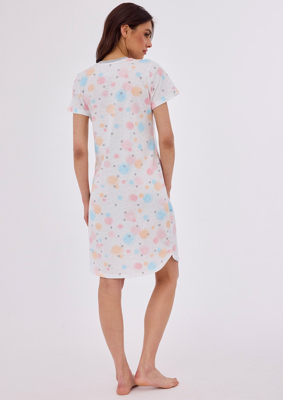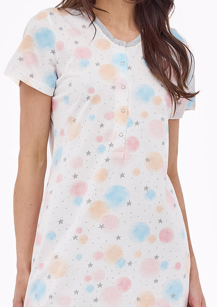 Dámska nočná košeľa s krátkym rukávom a krátkou rozopínacou légou vyrobená z úpletu zo 100% bavlny.