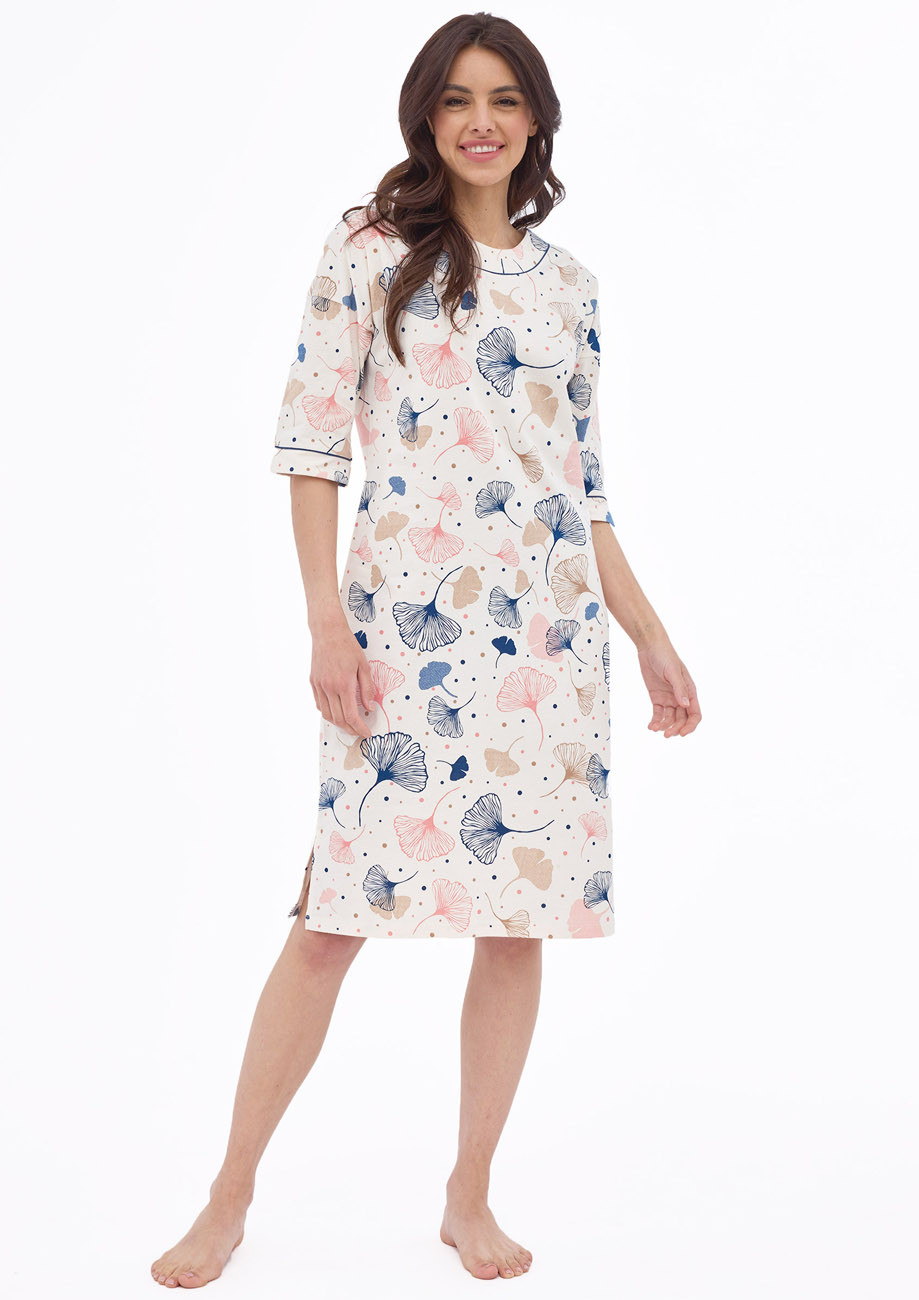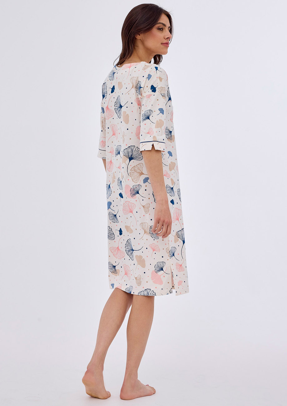 dámska nočná košeľa s 3/4 rukávom, vyrobená z úpletu zo 100% bavlny