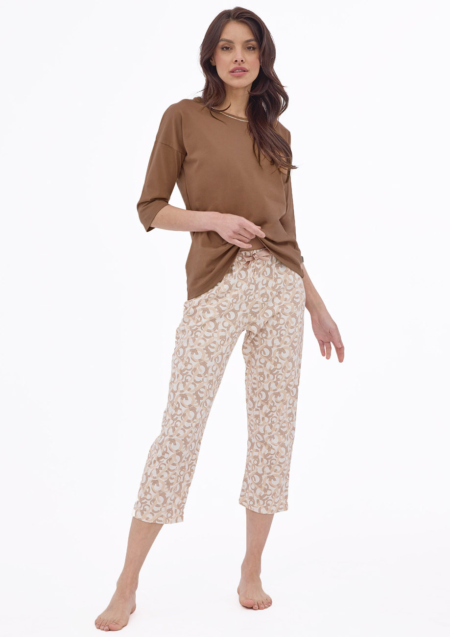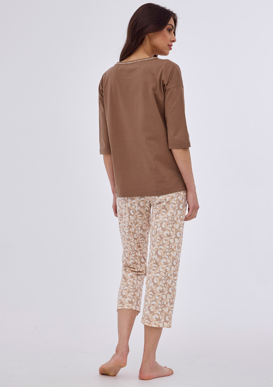 dámske pyžamo s 3/4 rukávom a 7/8 nohavicami. Je vyrobené zo 100% jemného bavlneného úpletu - všívaná guma v páse nohavíc.