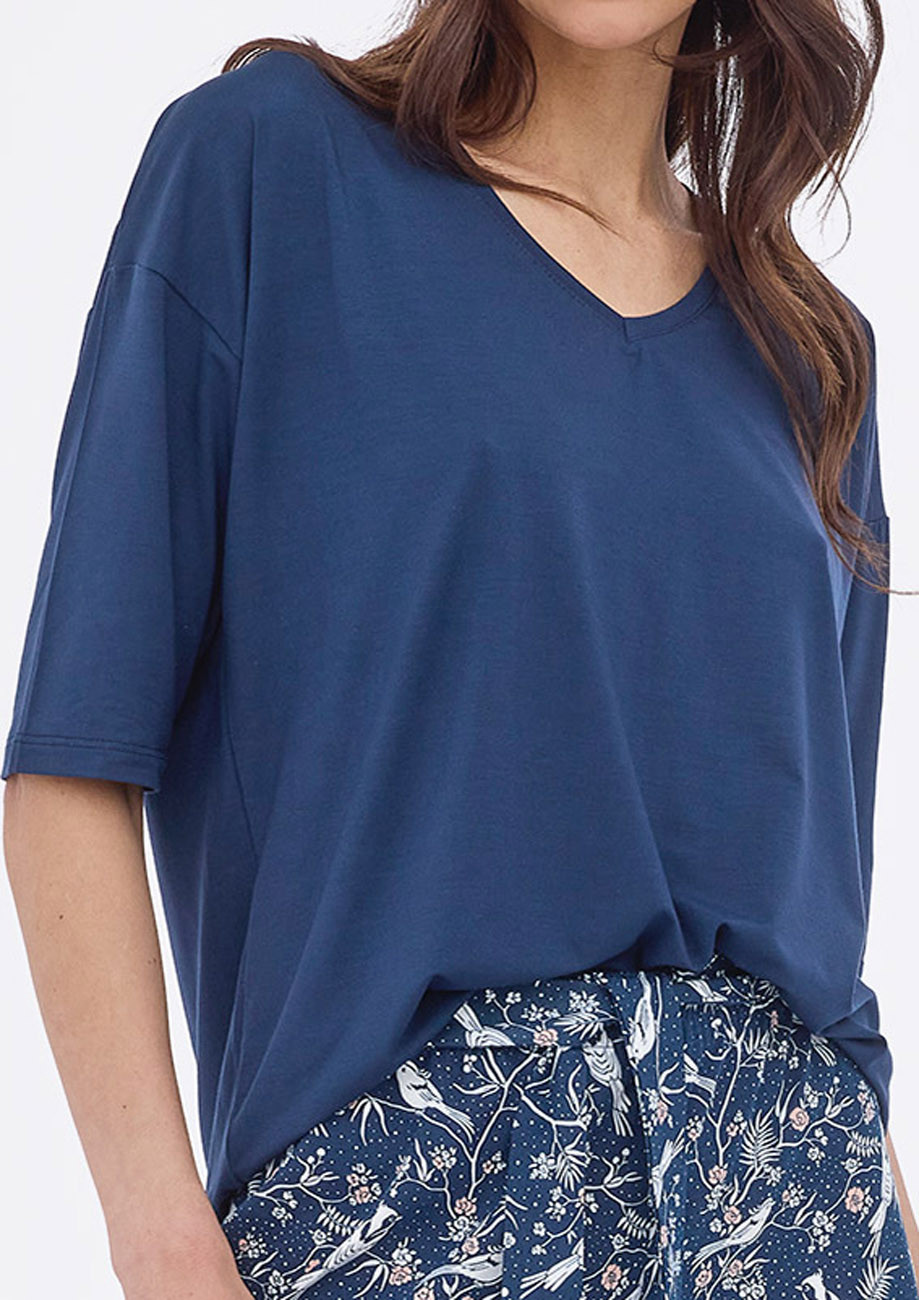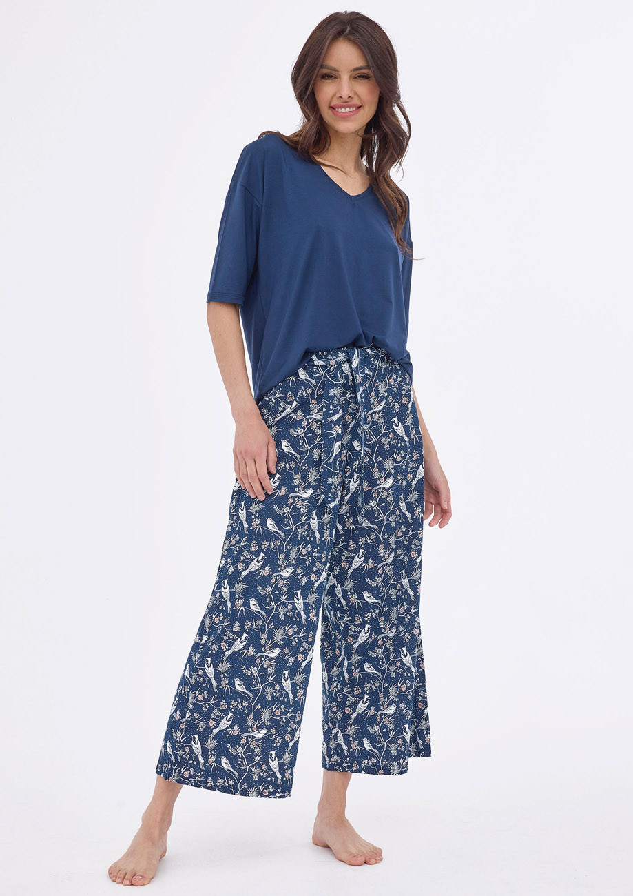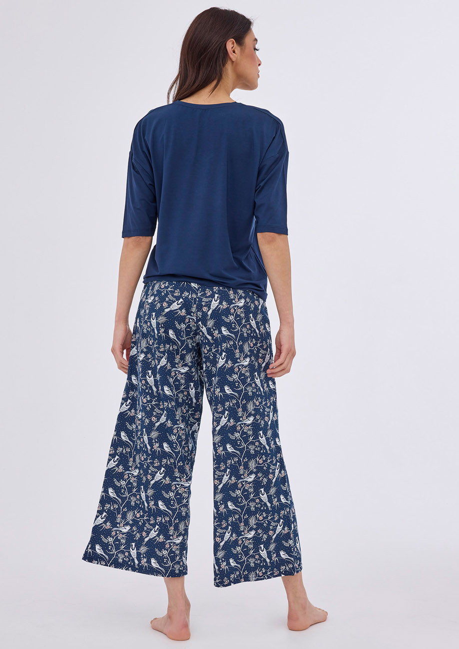 Dámske pyžamo s 3/4 rukávom a 7/8 nohavicami. Vrchná časť je vyrobená z príjemného modalu jemného na dotyk, nohavice sú zo 100% bavlny.