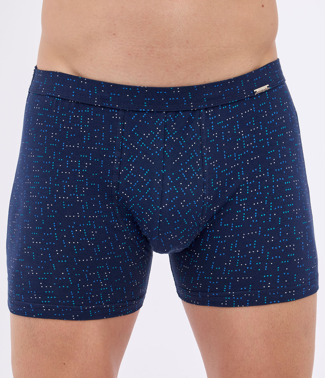 Pánske boxerky vyrobené z veľmi kvalitnej bavlny. Vďaka elastanu sa ideálne prispôsobia postave a poskytujú tak maximálny komfort a pohodlie pri nosení. Model má ploché švy a v páse má všitú pohodlnú širokú gumu obšitú bavlneným úpletom.