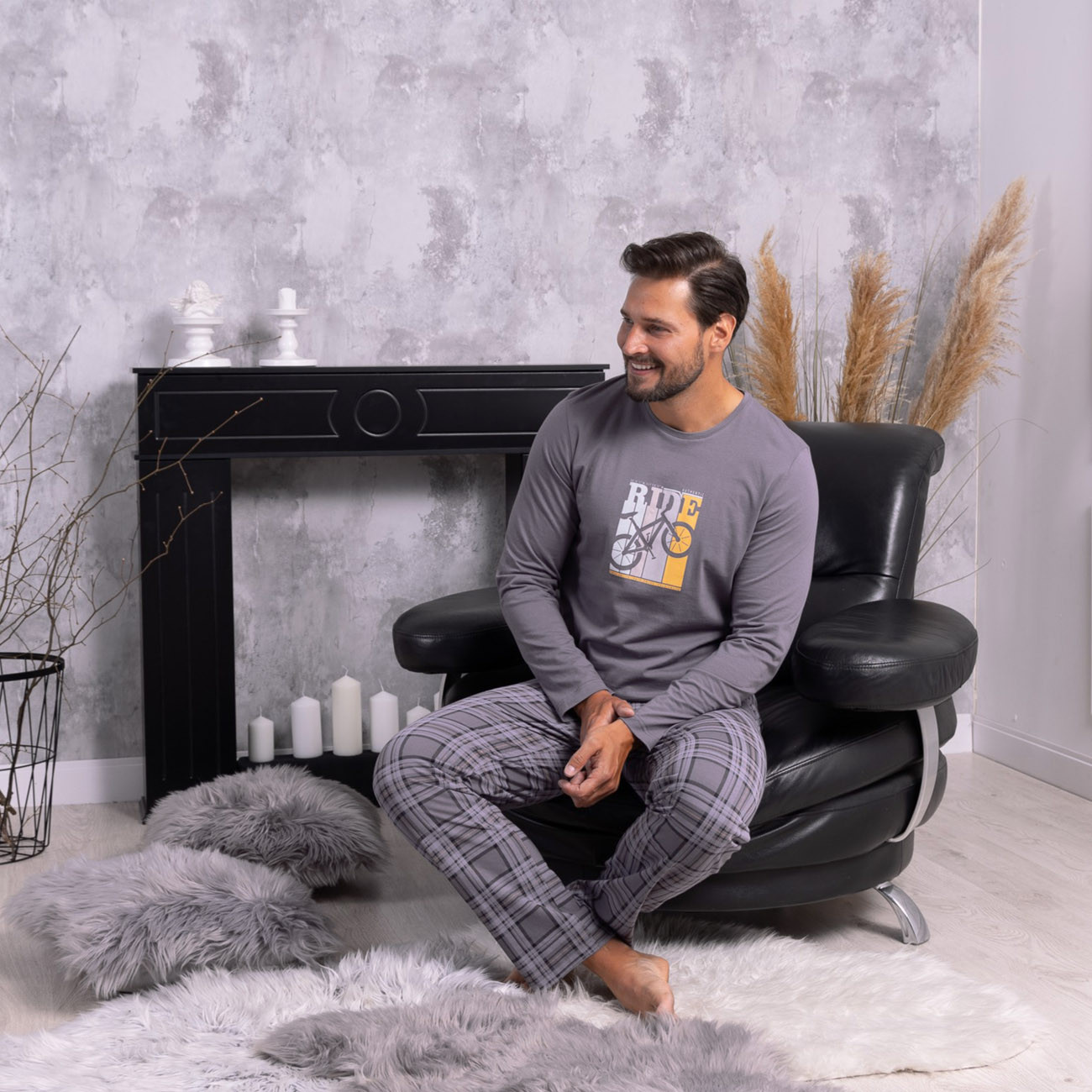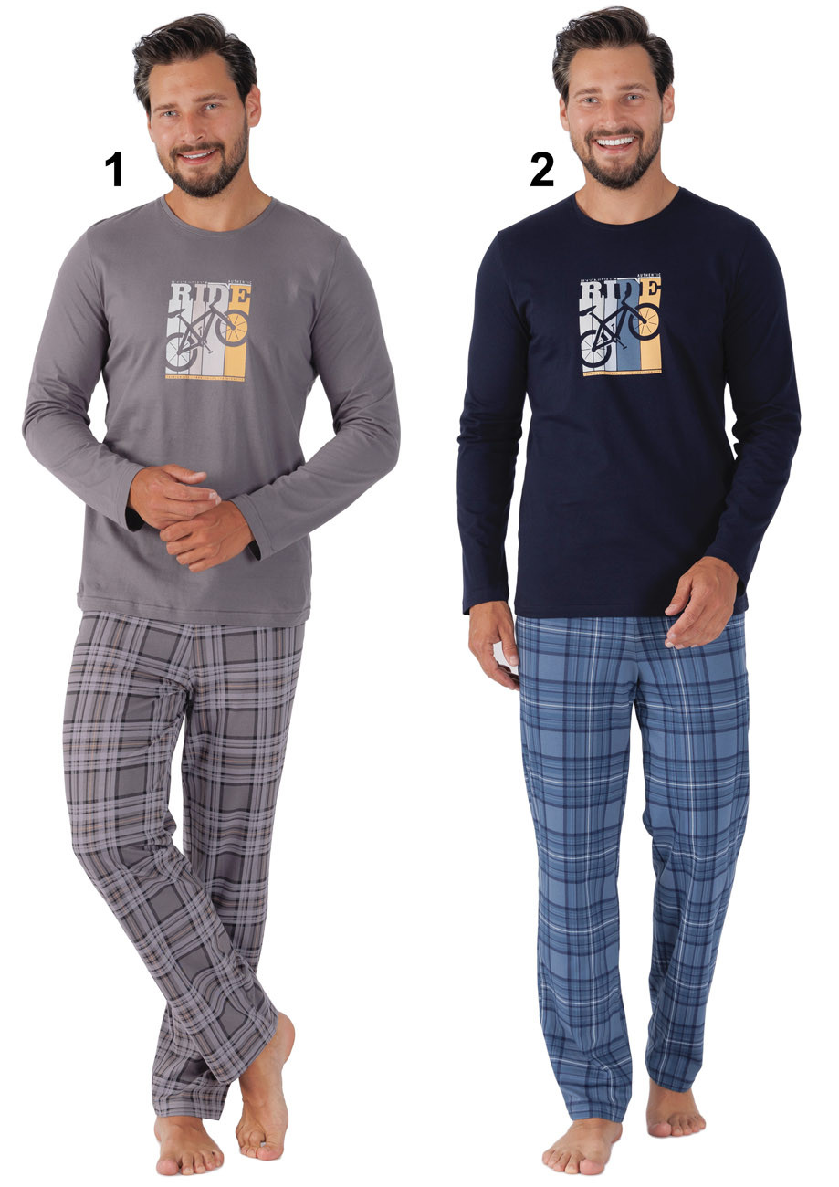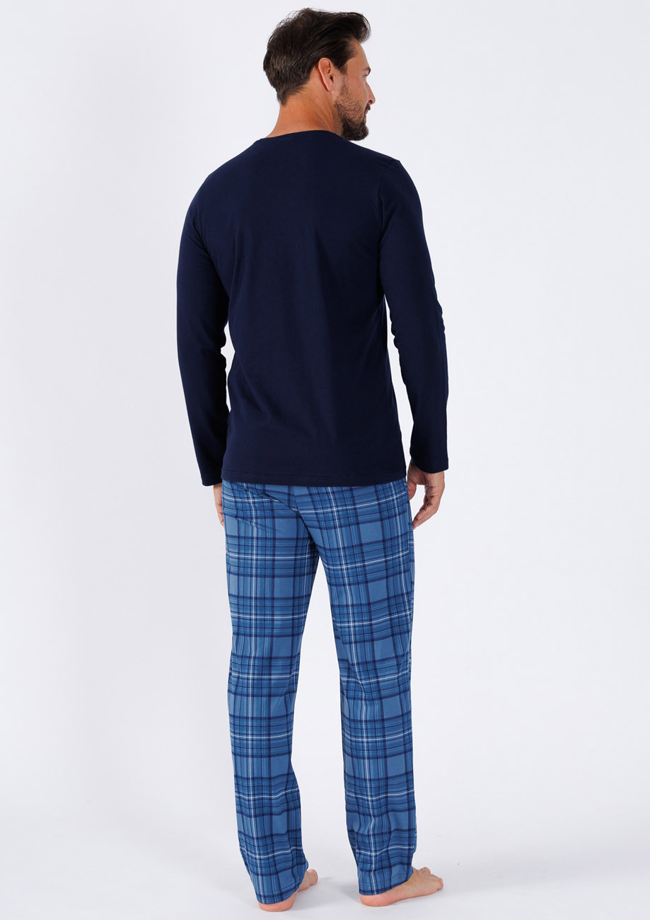 pánske pyžamo s dlhým rukávom a dlhými nohavicami - všívaná guma v páse nohavíc