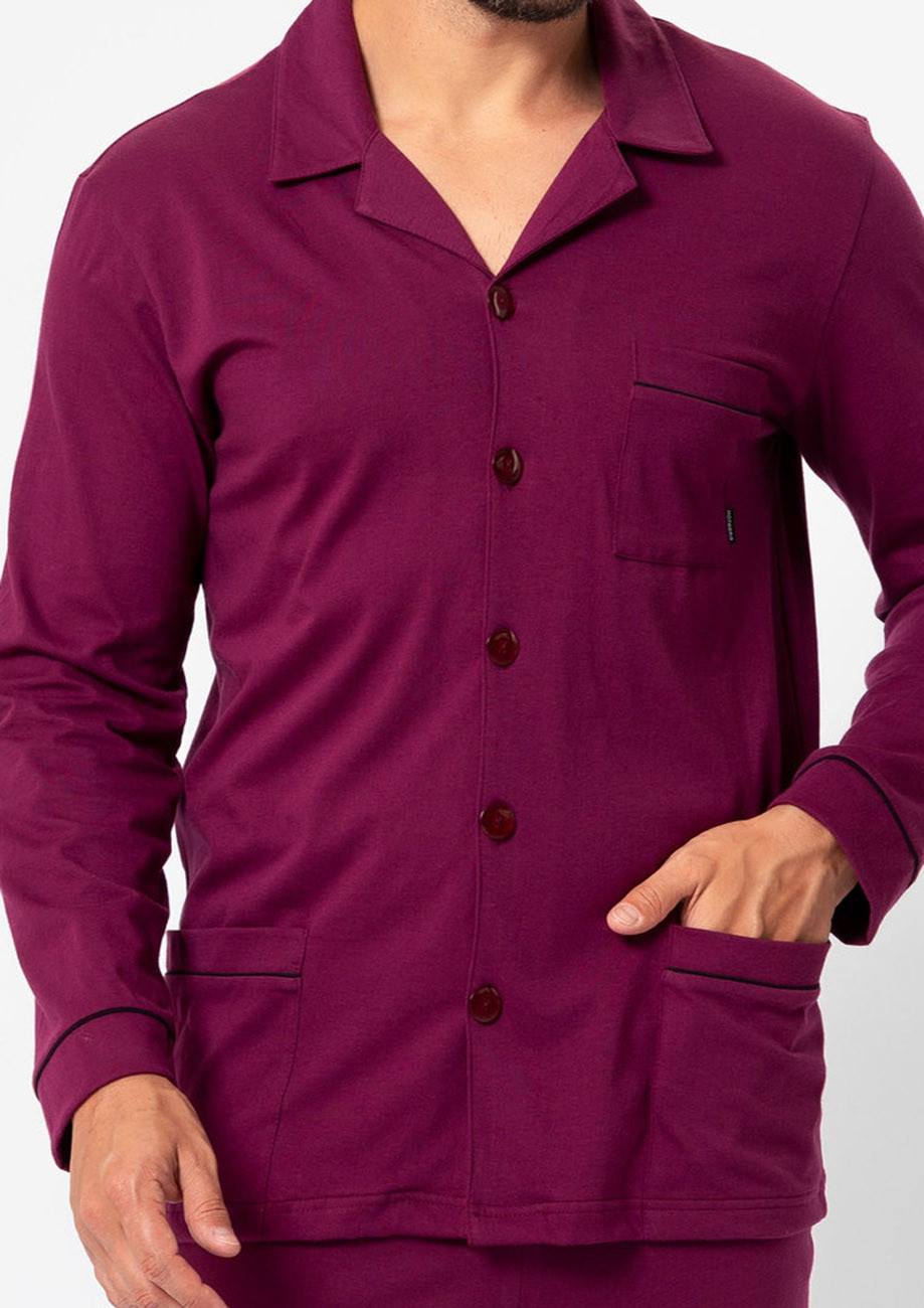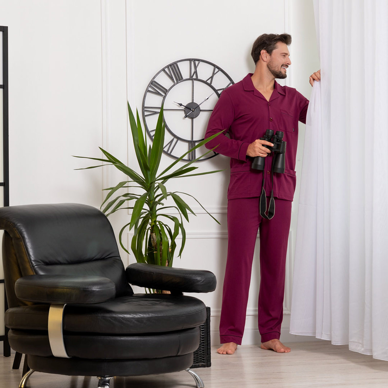 pánske pyžamo s dlhým rukávom, zapínanie na gombíky, navliekaná guma v páse nohavíc