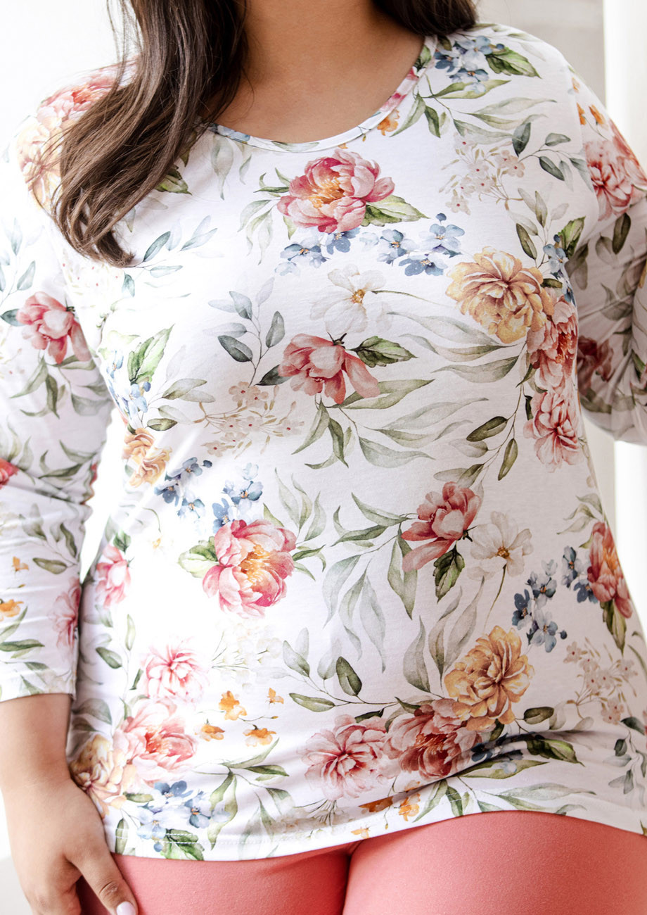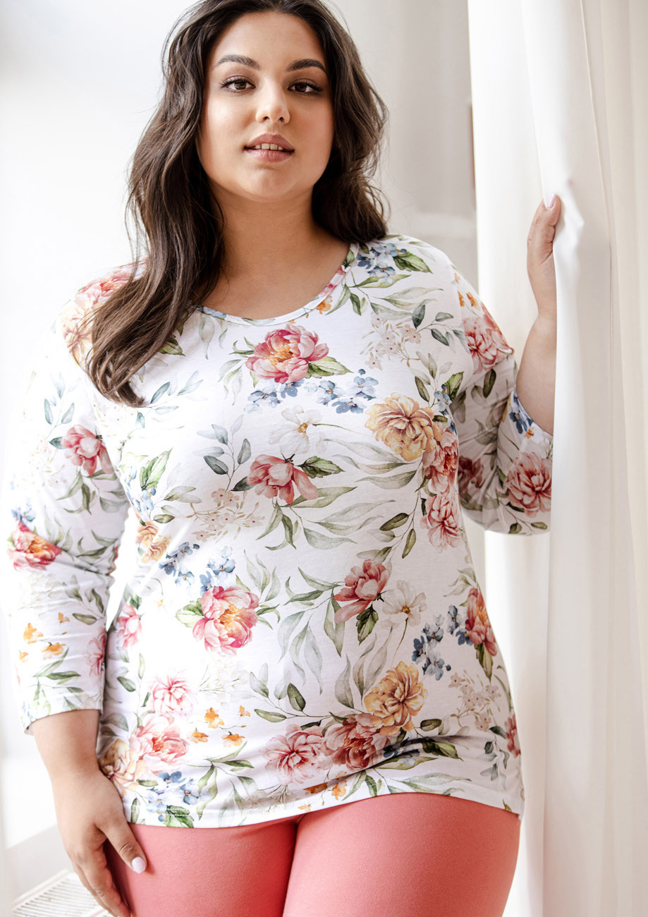 Dámske pyžamo s dlhým rukávom a 3/4 nohavicami vyrobené z úpletu zo 100% bavlny. Všívaná guma v páse nohavíc. Pyžamo je vhodné pre moletky.