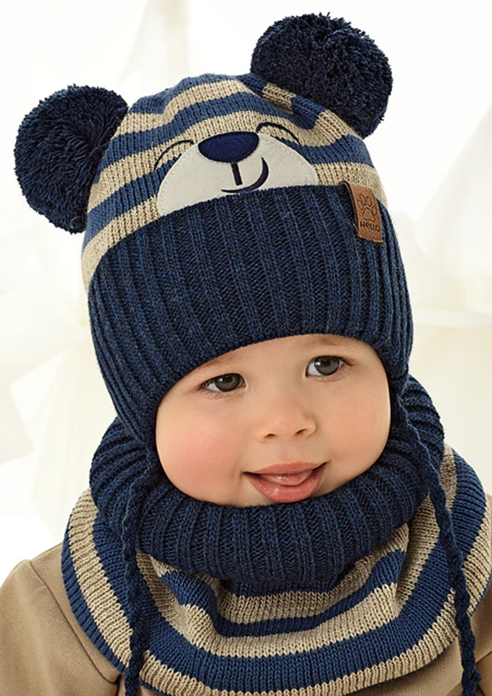 Detská teplá mäkká zimná čiapka s rolákovým nákrčníkom. Čiapka má vyhrnutý lem a je podšitá mäkkou podšívkou z počesaného úpletu. Viazanie na šnúrku pod bradou dieťaťa.