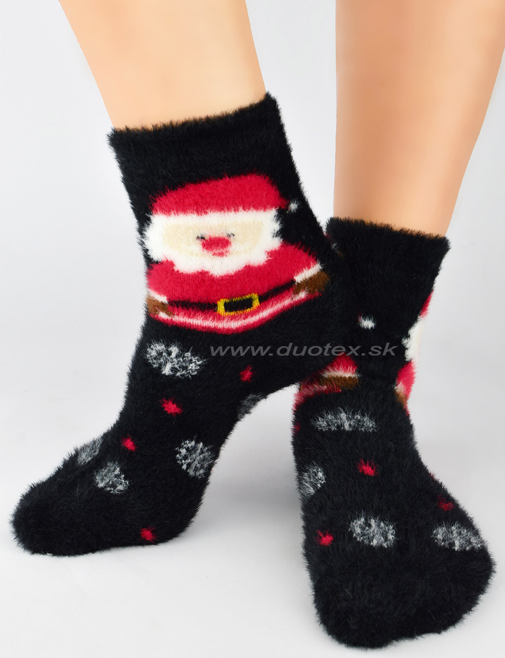 Vzorované chlpaté ponožky s veselým zimným/vianočným motívom