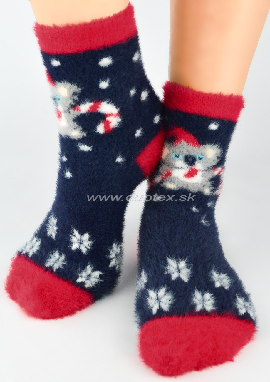 Vzorované chlpaté ponožky s veselým zimným/vianočným motívom