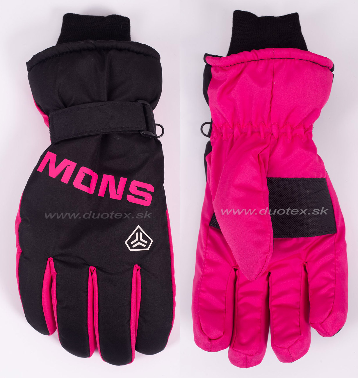 Dámske teplé rukavice lyžiarského typu. Rukavice majú elastickú manžetu a vnútro je vyteplené hrubou hrejivou vrstvou. V oblasti dlane sú opatrené pogumovaným materiálom.