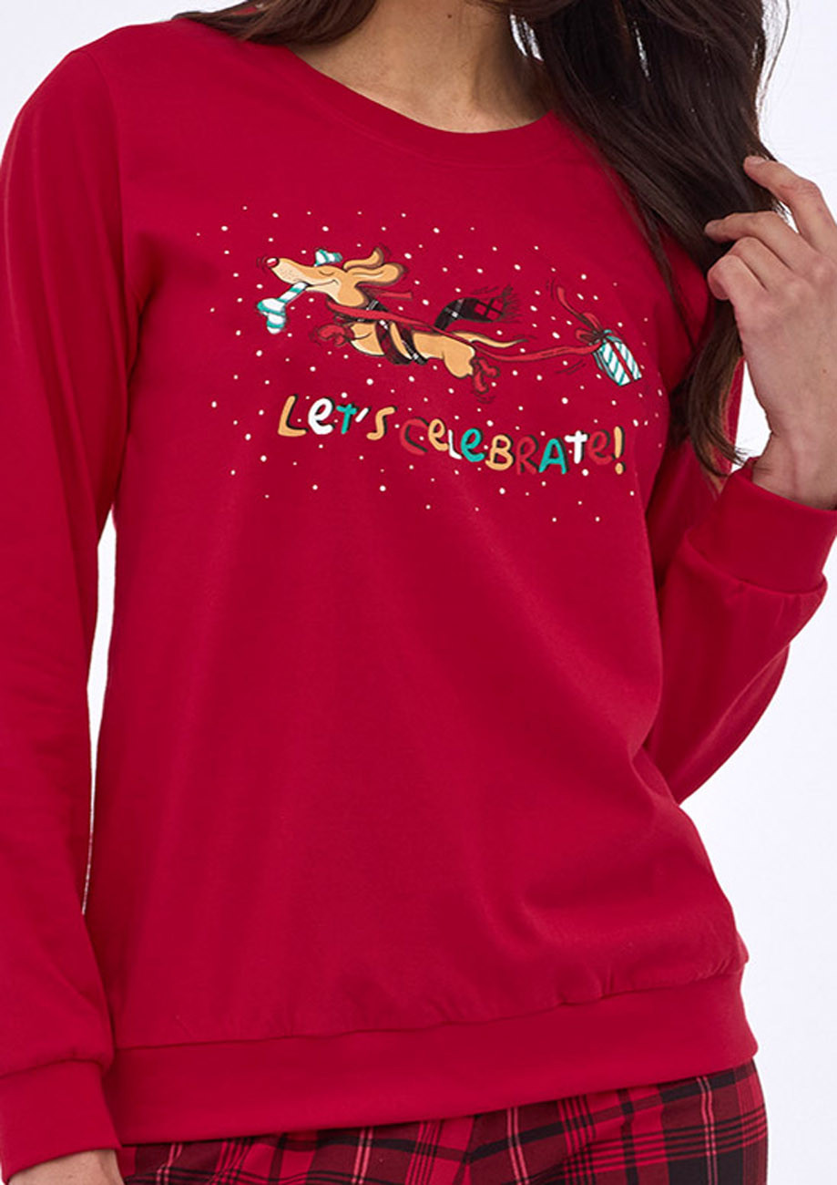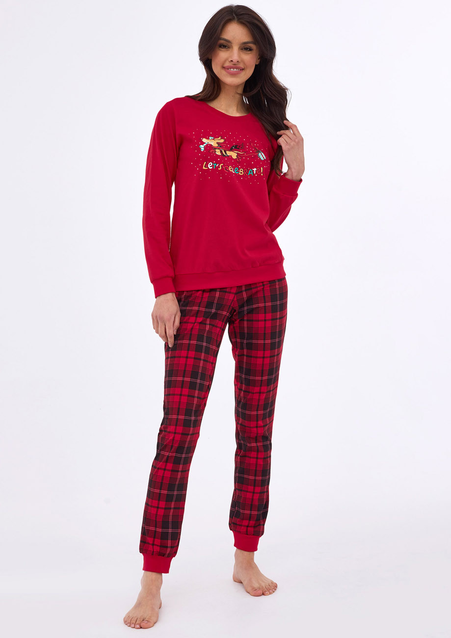 Dámske vianočné pyžamo s dlhým rukávom a dlhými nohavicami ukončé pružnými patentami. Je vyrobené zo 100% bavlneného úpletu - všívaná guma v páse. Pyžamo patrí do vianočnej rodinnej kolekcie spolu s pánskym pyžamom 115/255-Celebrate a detskými pyžamami 594/174, 592/174, 593/156, 966/156-Celebrate. Vytvorte si vianočnú pohodu s pyžamami Celebrate (mama a dcéra, otec a syn) .
