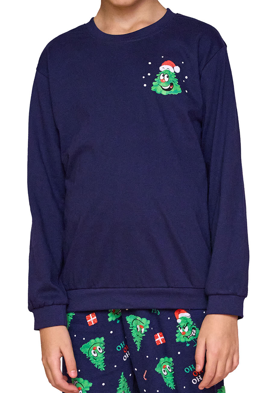 Chlapčenské vianočné pyžamo s okrúhlym výstrihom, s dlhým rukávom a dlhými nohavicami, spodná časť rukávov i nohavíc stiahnutá do pružného lemu, všívaná široká guma v páse nohavíc. Pyžamo je vyrobené zo 100% bavlneného úpletu. Pyžamko patrí do vianočnej rodinnej kolekcie spolu s dámskym pyžamom 671/419-Christmas-Tree a pánskym pyžamom 115/283-Christmas-tree. Vytvorte si vianočnú pohodu s pyžamami Christmas-tree (mama a dcéra, otec a syn) .