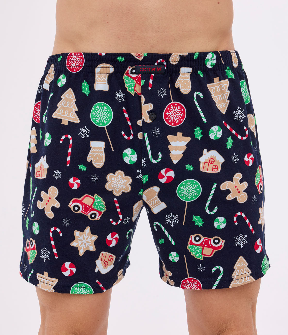 pánske boxerky voľnejšieho strihu so širokou všívanou gumou, veselým vianočným motívom a gombíkom v rozkroku pre maximálne pohodlie pri ich nosení. Sú vyrobené z úpletu z kvalitnej 100% bavlny, ktorá je mäkká a príjemná na dotyk.