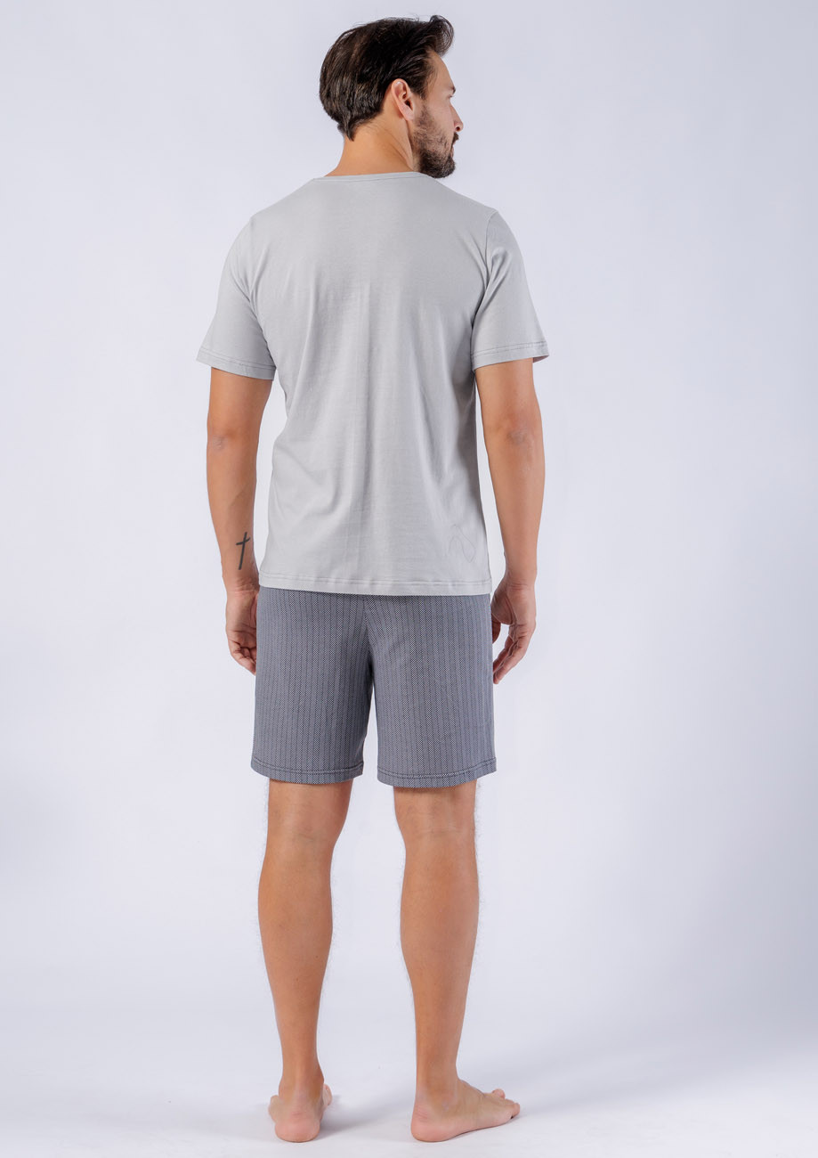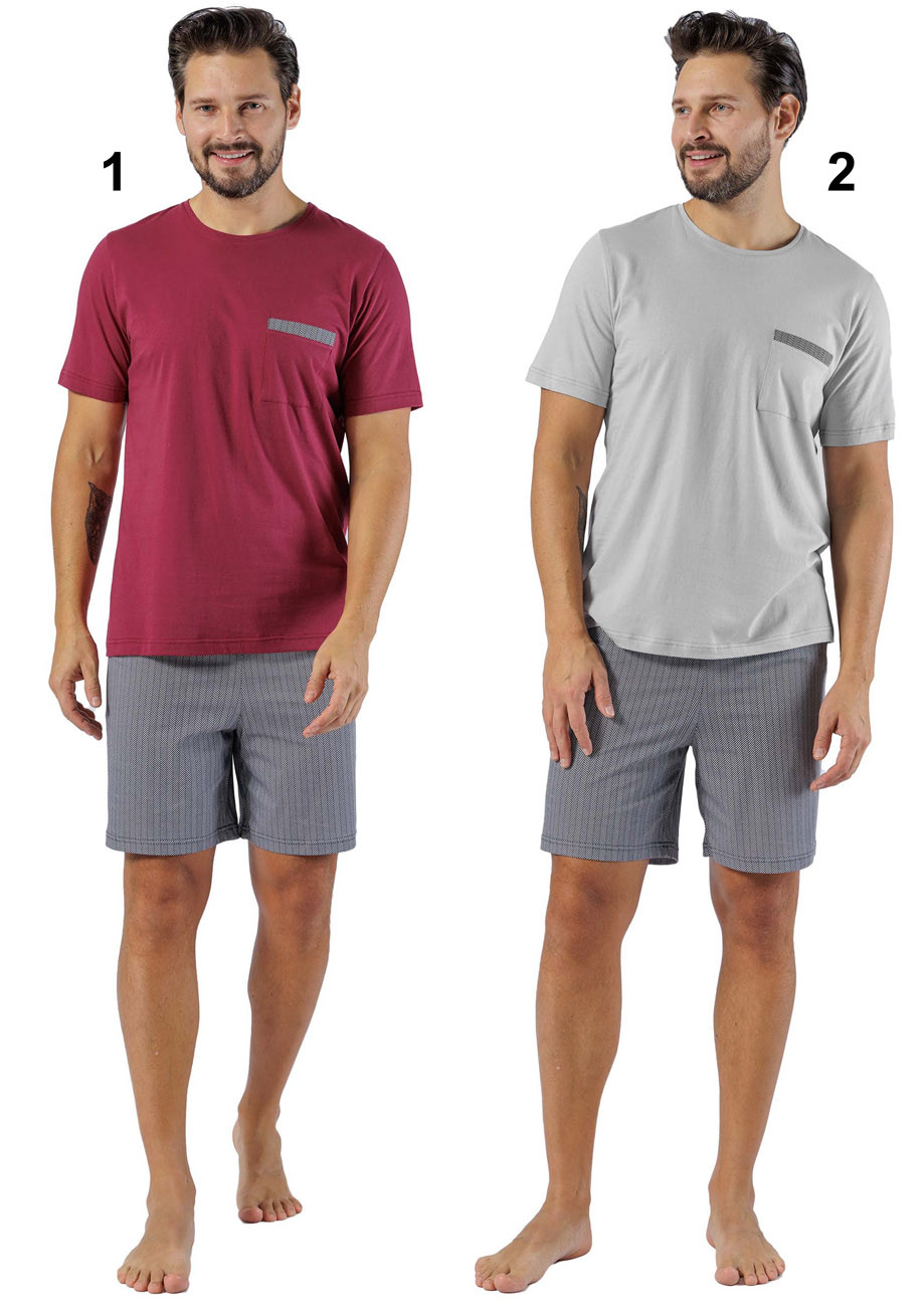 pánske pyžamo s krátkym rukávom a krátkymi nohavicami vyrobené zo 100% bavlny, všívaná guma v páse nohavíc