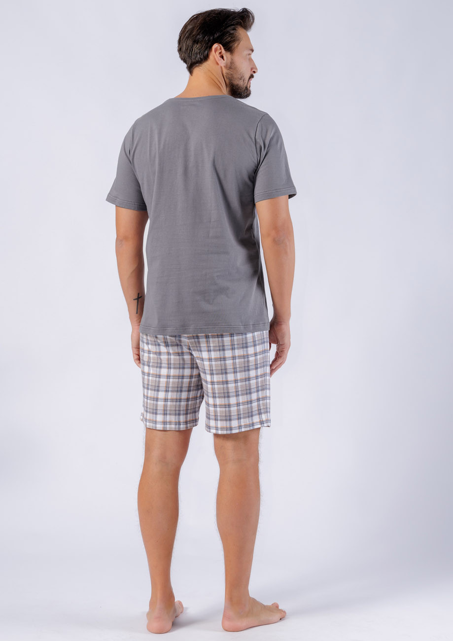 pánske pyžamo s krátkym rukávom a krátkymi nohavicami vyrobené zo 100% bavlneného úpletu, všívaná guma v páse nohavíc