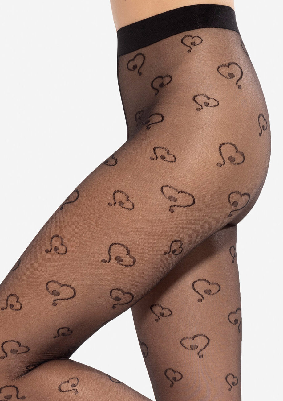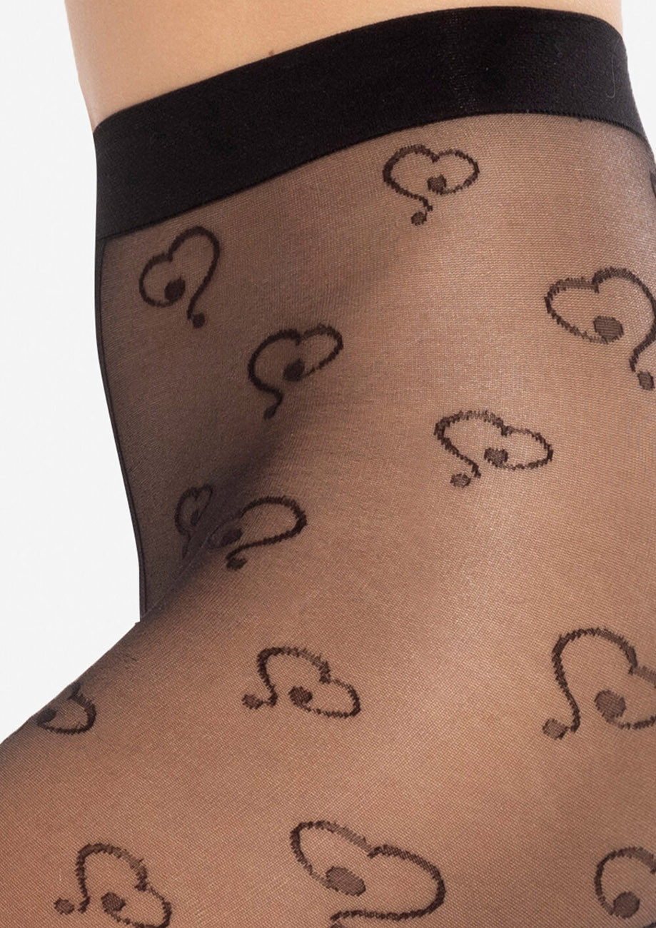 Jemné dámske vzorované pančuchové nohavice bez zosilneného sedu (zosilnenie iba pri šve - v tvare T), so zosilnenou špičkou, 20den.