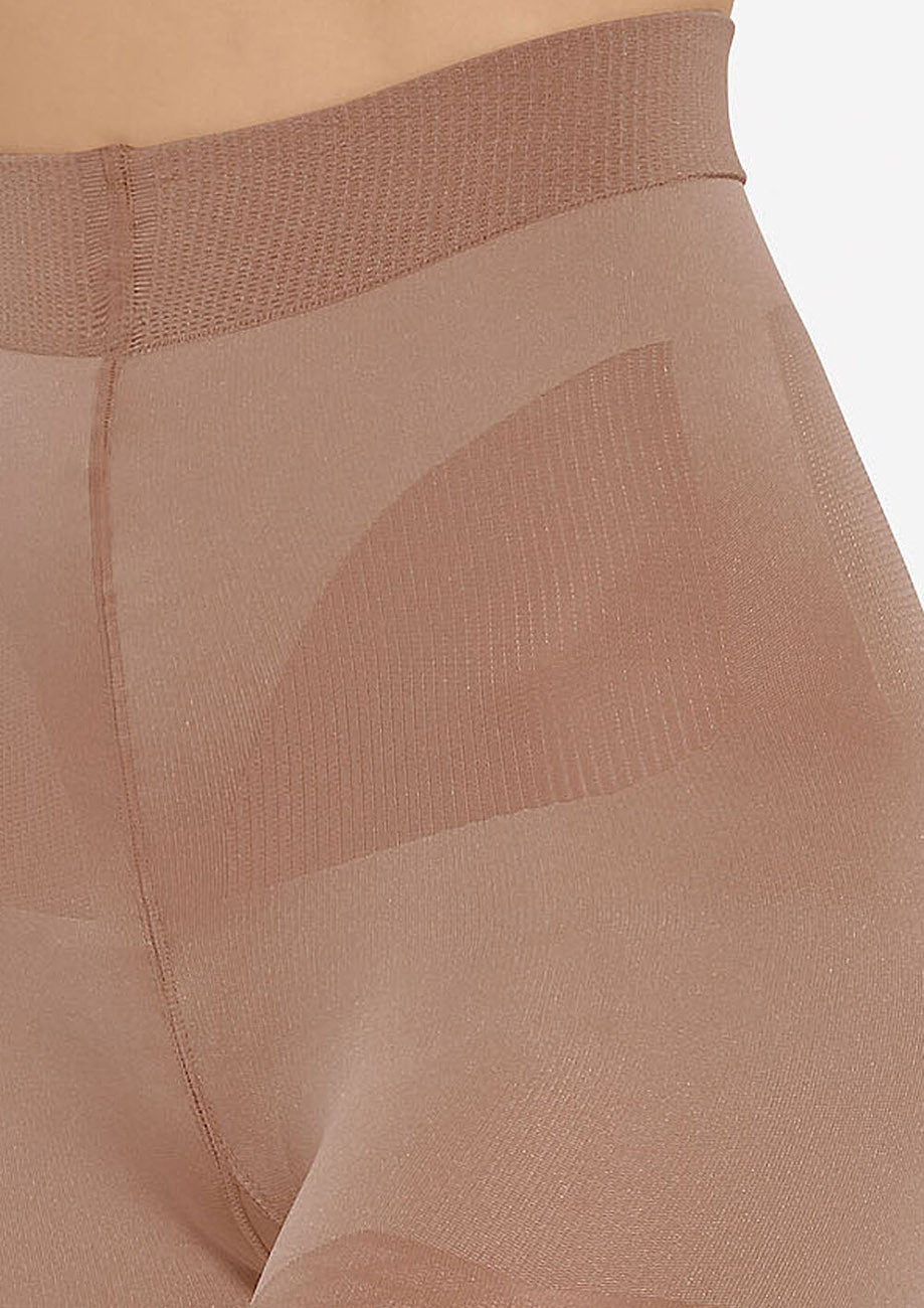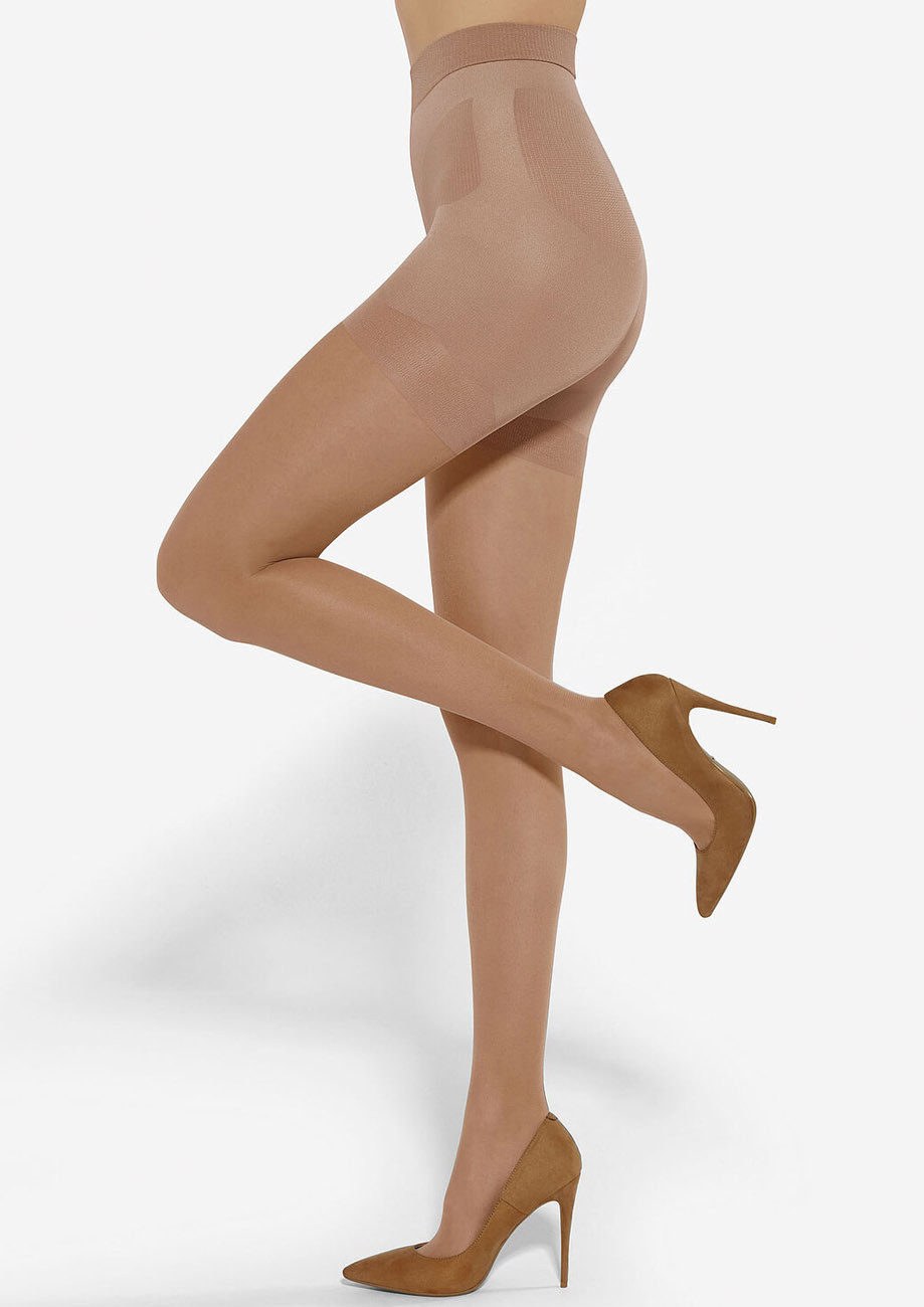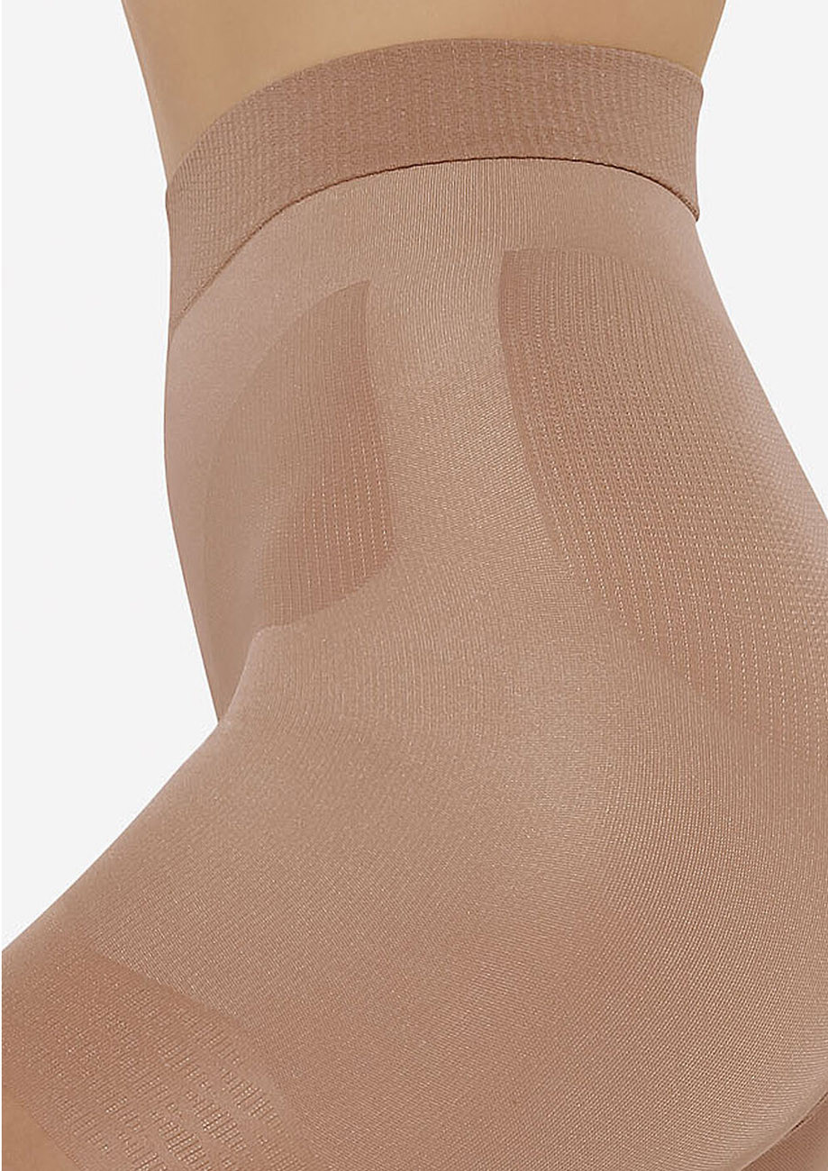 Dámske elastické formujúce pančuchové nohavice. Vďaka špeciálnej konštrukcii nohavičkovej časti dokonale priliehajú k telu, modelujú tvar postavy, líniu zadku a bokov. Majú ploché švy a pružnú netlačiacu gumičku, vďaka čomu sú pod oblečením neviditeľné, 20den.