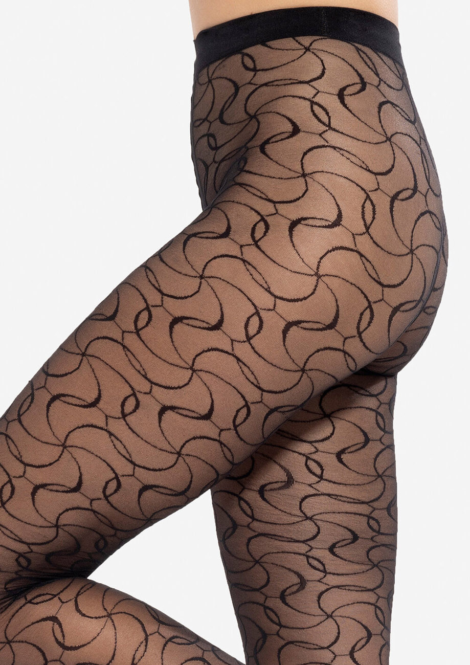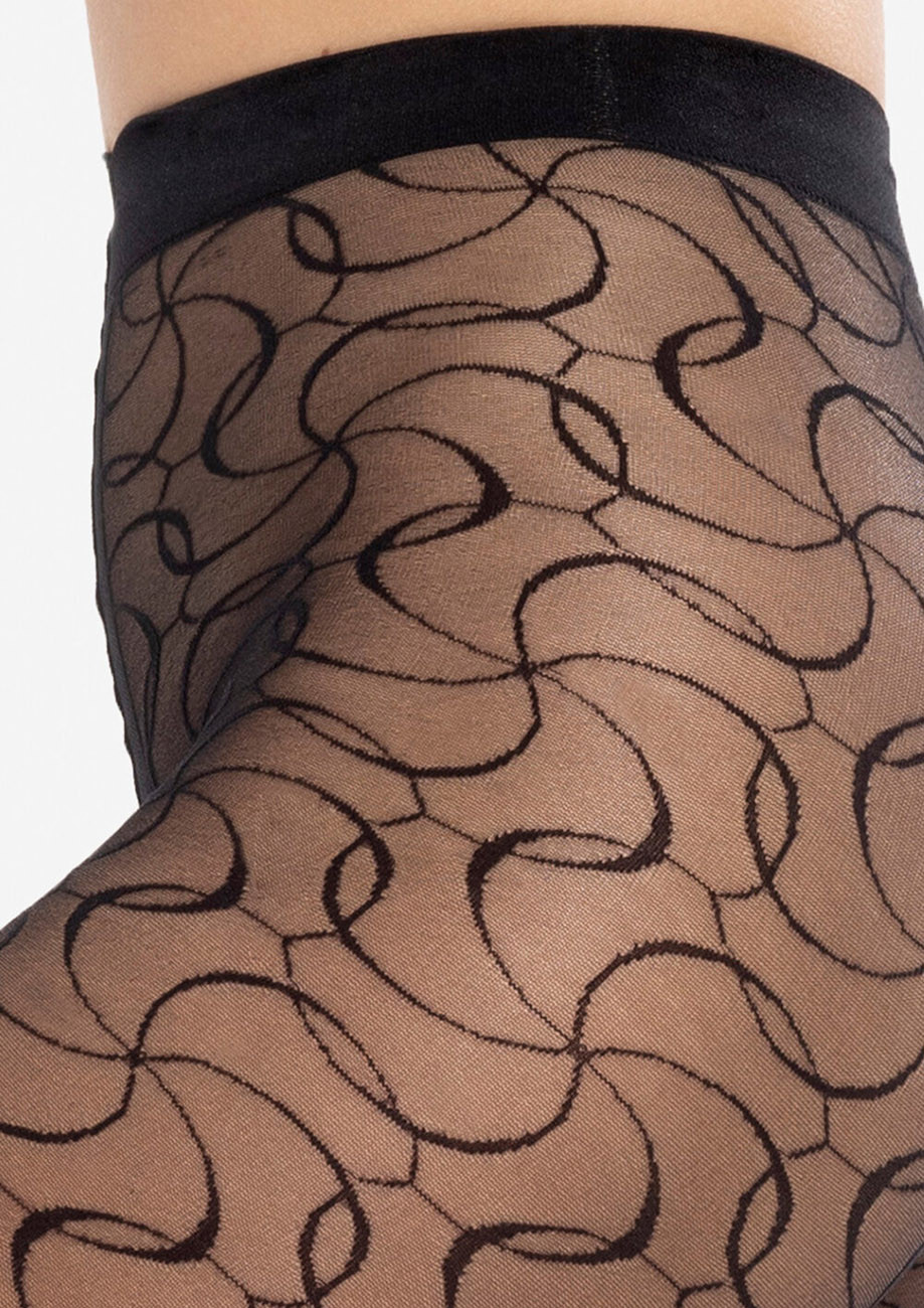 Dámske vzorované pančuchové nohavice bez zosilneného sedu (zosilnenie iba pri šve - v tvare T), so zosilnenou špicou, 20den