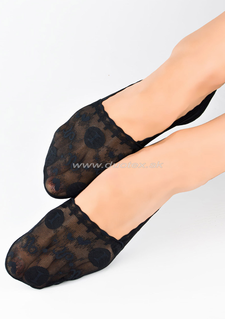 Dámske efektné jednofarebné krajkové šľapky. Spodná časť je vyhotovená z bavlneného úpletu s ABS proti šmýkaniu v obuvi. Silokónový prúžok v oblasti päty a po bokoch fixuje ponožku proti posuvu.