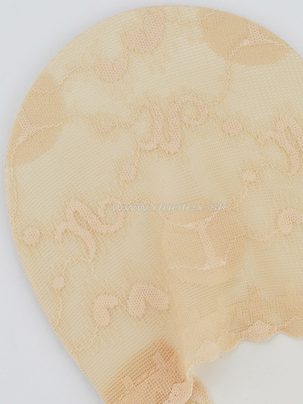 Dámske efektné jednofarebné krajkové šľapky. Spodná časť je vyhotovená z bavlneného úpletu s ABS proti šmýkaniu v obuvi. Silokónový prúžok v oblasti päty a po bokoch fixuje ponožku proti posuvu.