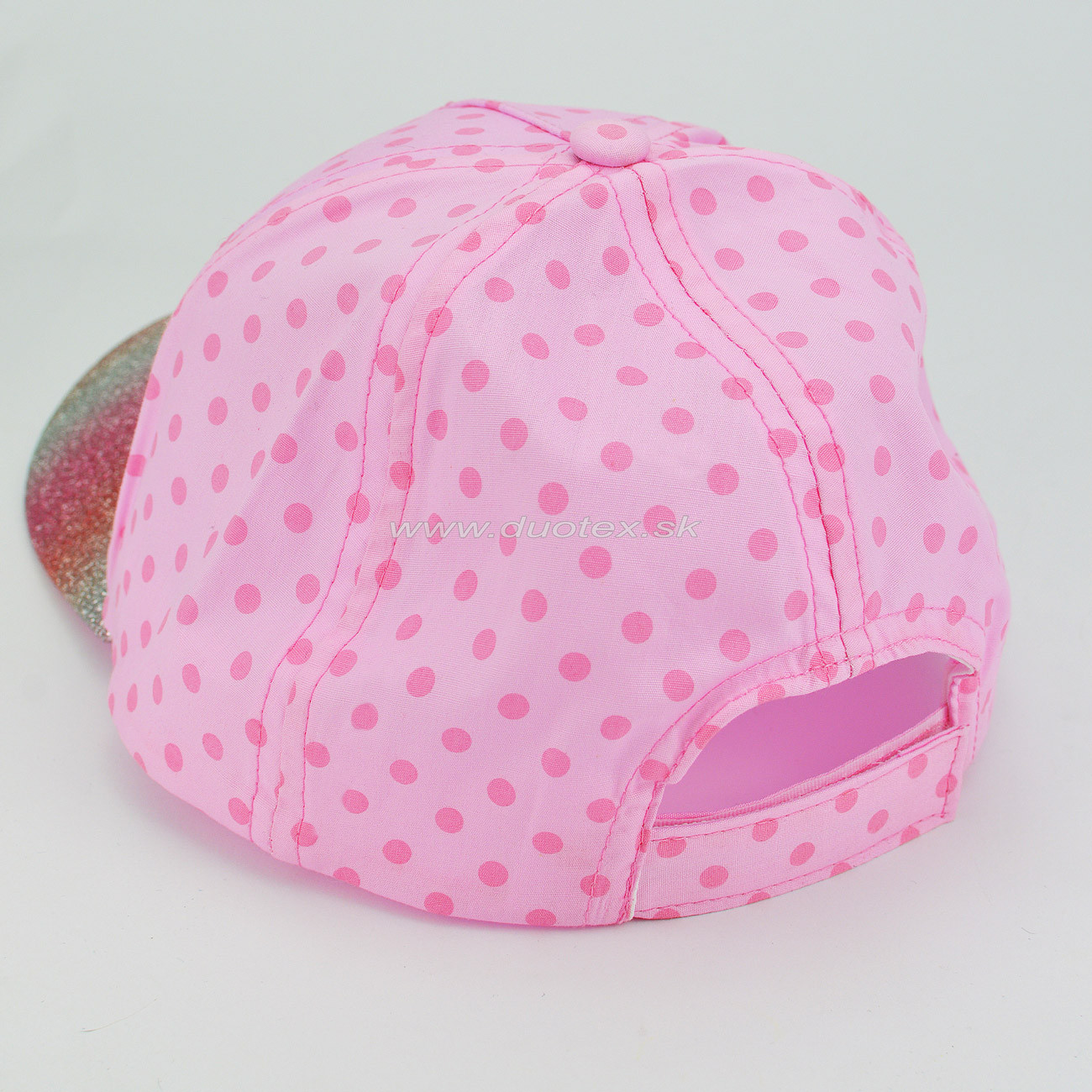 Detská šiltovka vyrobená z tenkej bavlnenej tkaniny. Veľkosť sa dá pohodlne upraviť pomocou prúžku zo suchého zipsu v zadnej časti šiltovky.