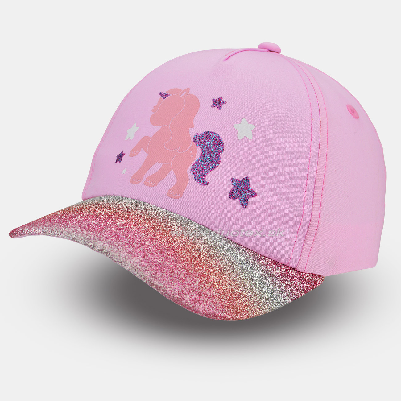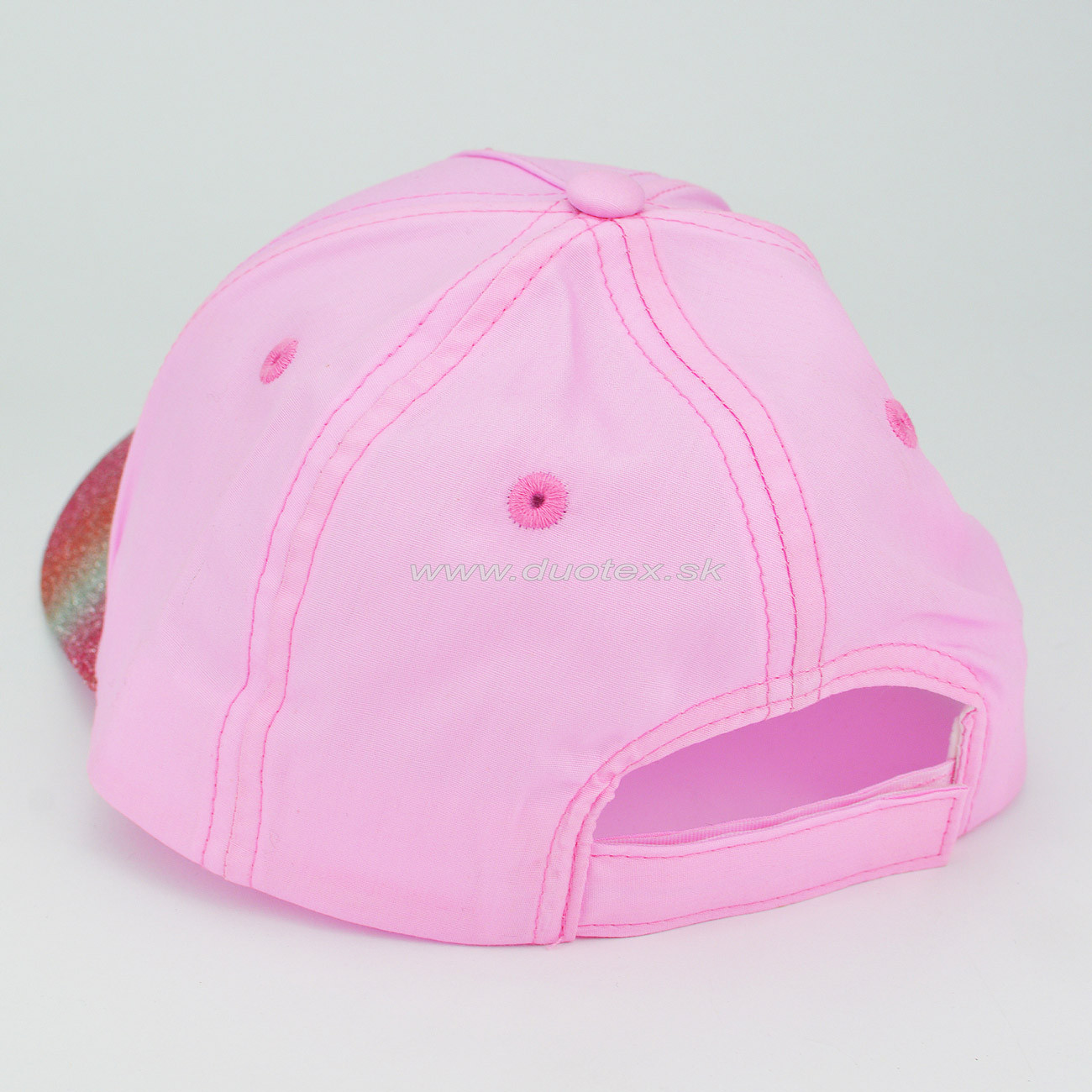 Detská šiltovka vyrobená z tenkej bavlnenej tkaniny. Veľkosť sa dá pohodlne upraviť pomocou prúžku zo suchého zipsu v zadnej časti šiltovky.