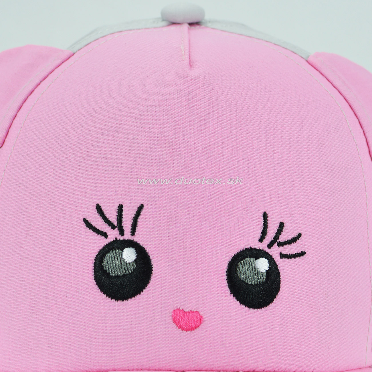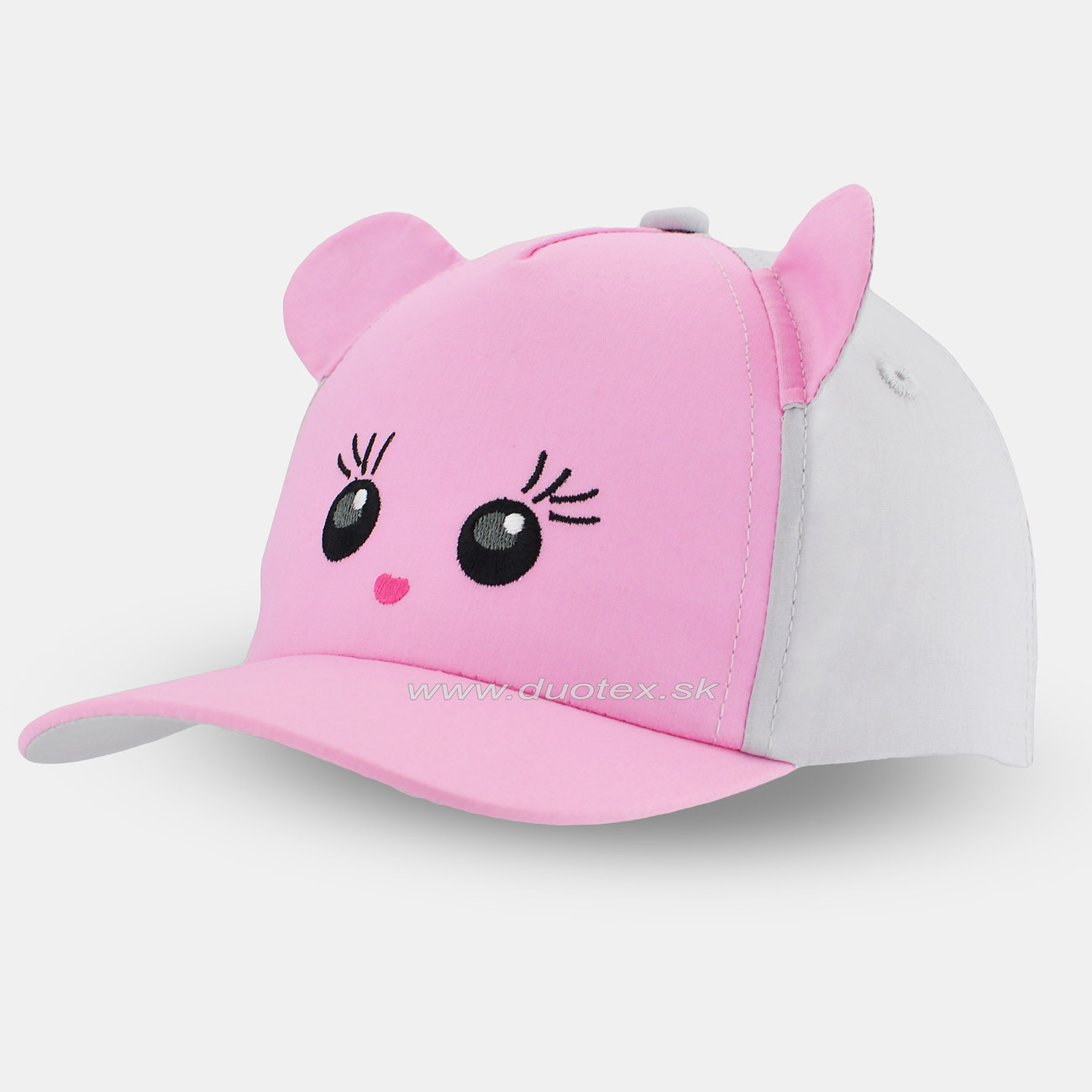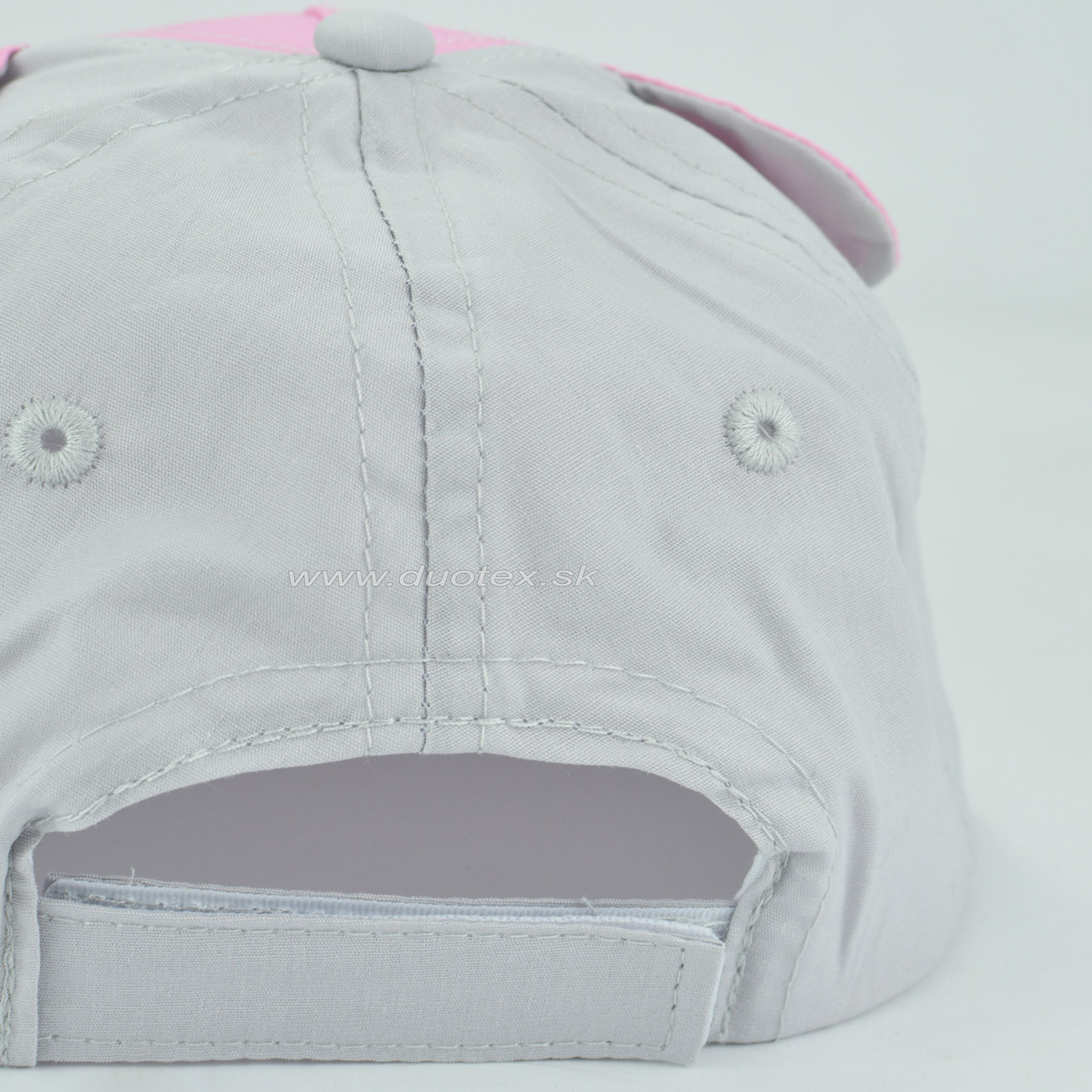 Detská šiltovka vyrobená z tenkej bavlnenej tkaniny. Veľkosť sa dá pohodlne upraviť pomocou prúžku zo suchého zipsu v zadnej časti šiltovky.