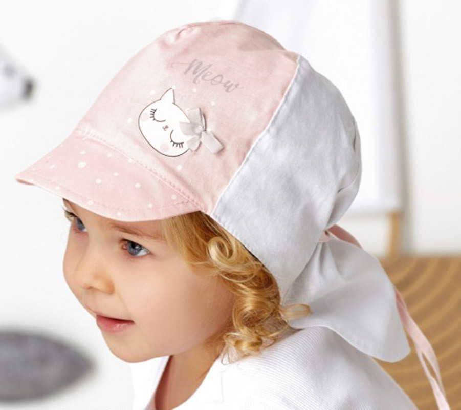 Detská letná čiapka so šiltom a predĺženou zadnou časťou na ochranu krku a časti ramien. Šiltovka je vyrobená z ľahkej tenkej bavlnenej tkaniny.