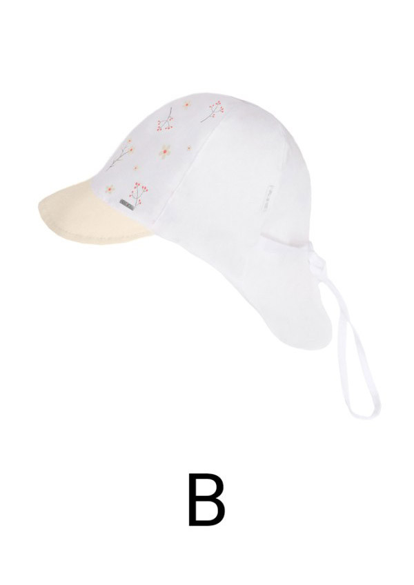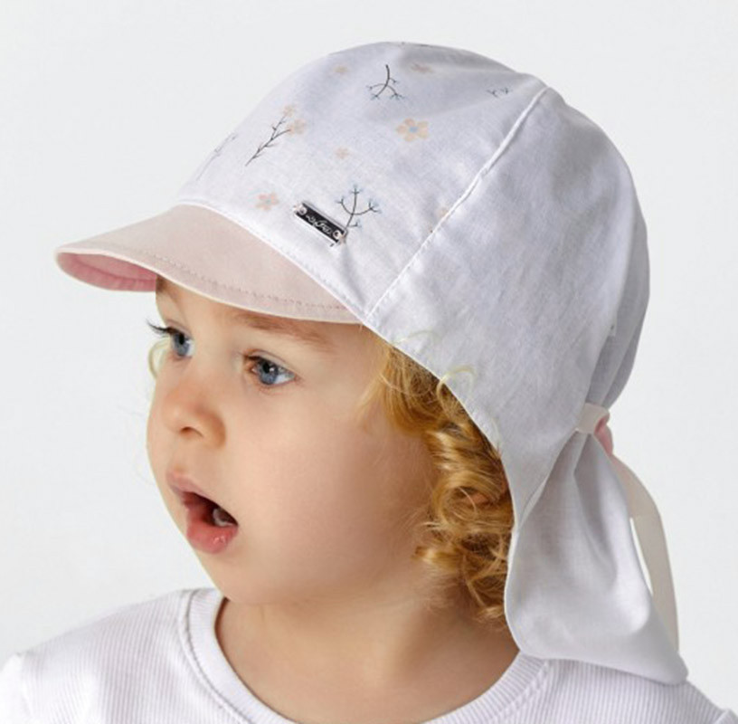Detská letná čiapka so šiltom a predĺženou zadnou časťou na ochranu krku a časti ramien. Šiltovka je vyrobená z ľahkej tenkej bavlnenej tkaniny.