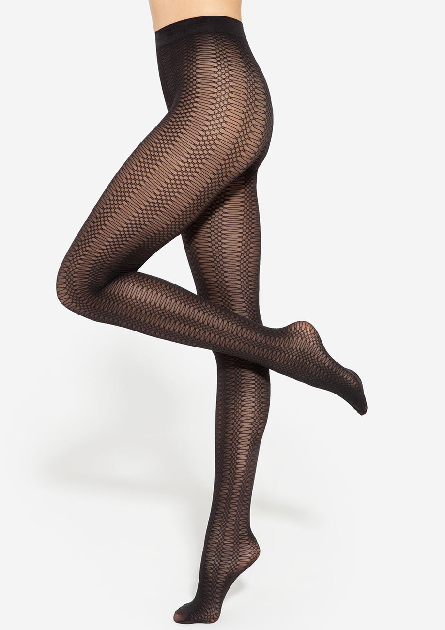 Dámske vzorované pančuchové nohavice bez zosilneného sedu (zosilnenie iba pri šve - v tvare T), so zosilnenou špicou, 40den