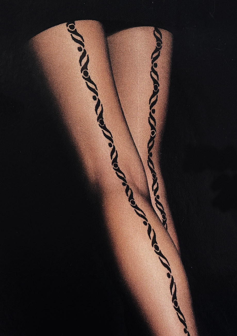 Dámske vzorované elastické pančuchové nohavice bez zosilneného sedu (zosilnenie iba pri šve - v tvare T), bez zosilnenej špice, 20den