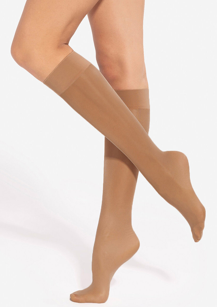 Dámske kompresívne podkolienky vyrobené zo špeciálnych elastických opletaných vlákien zaručujúcich jemnú a postupnú kompresiu. Odporúčané pre prevenciu zdravých nôh.