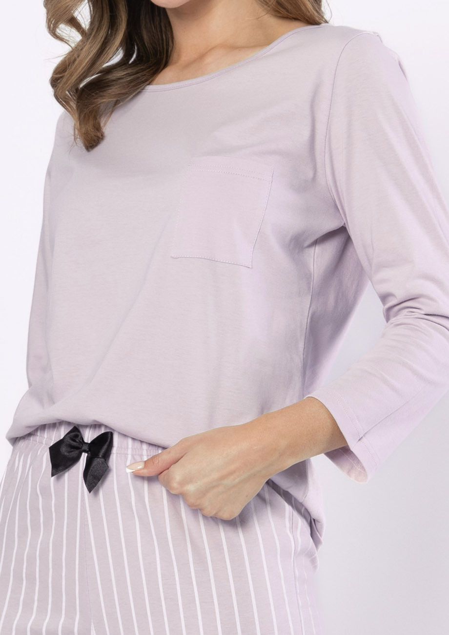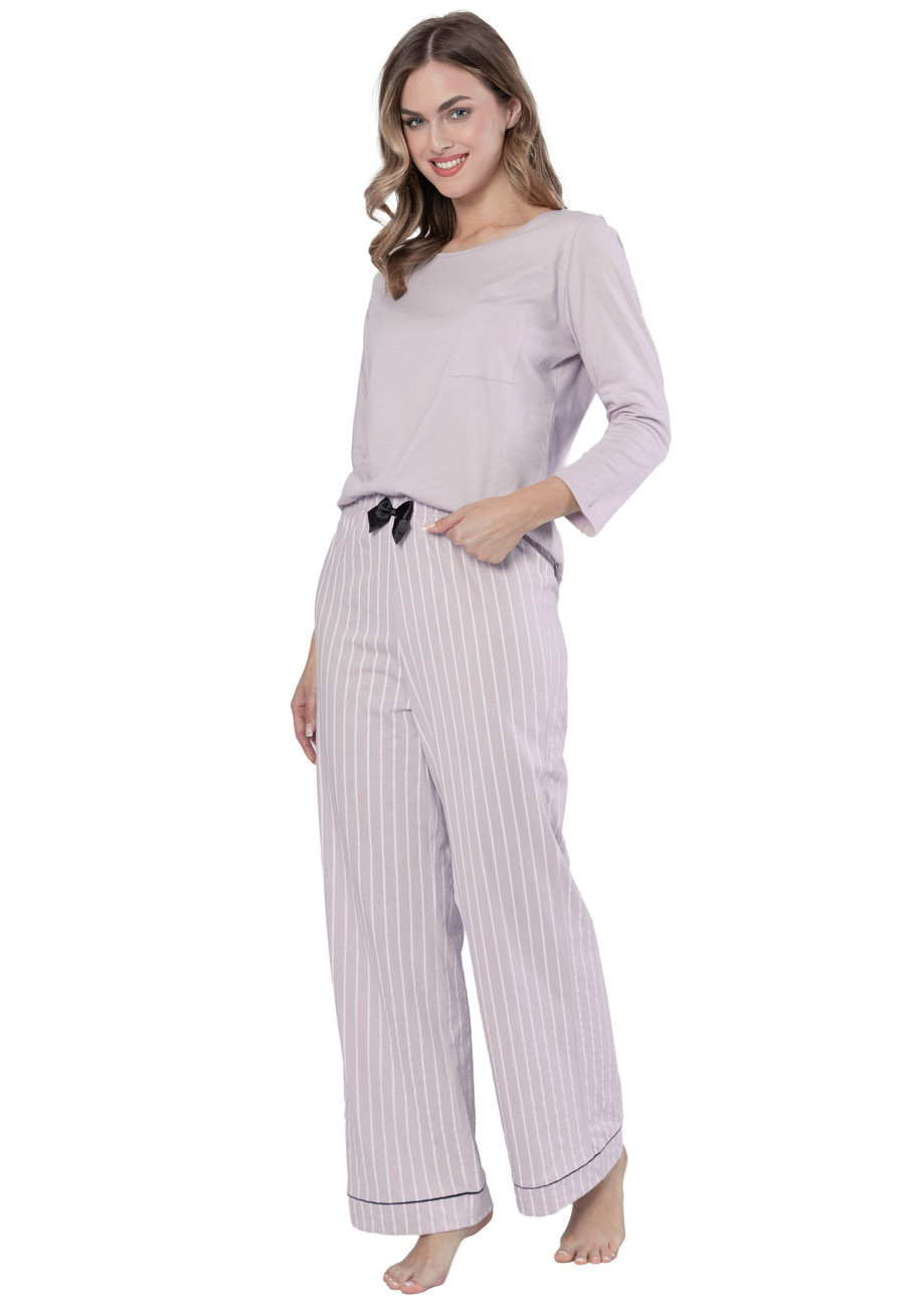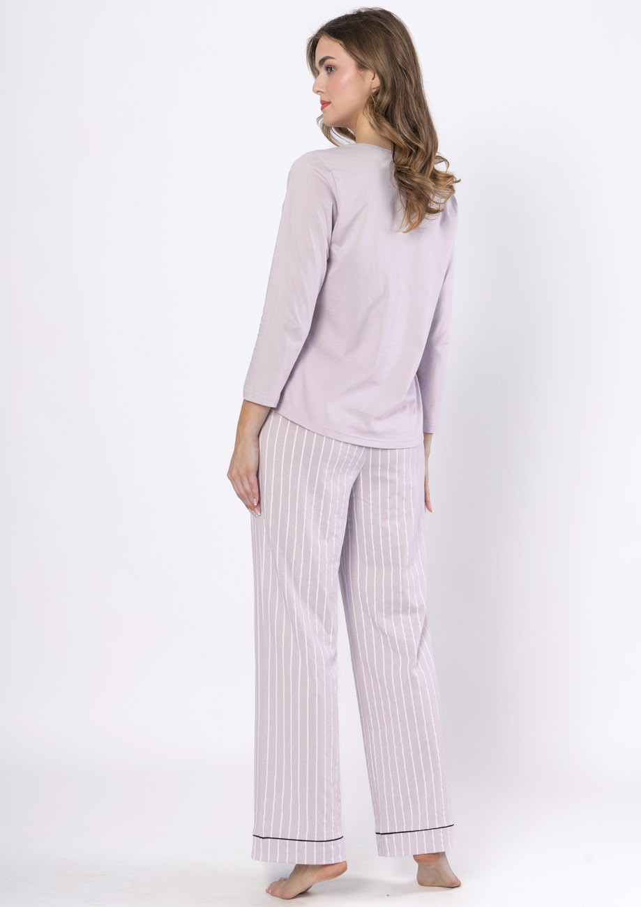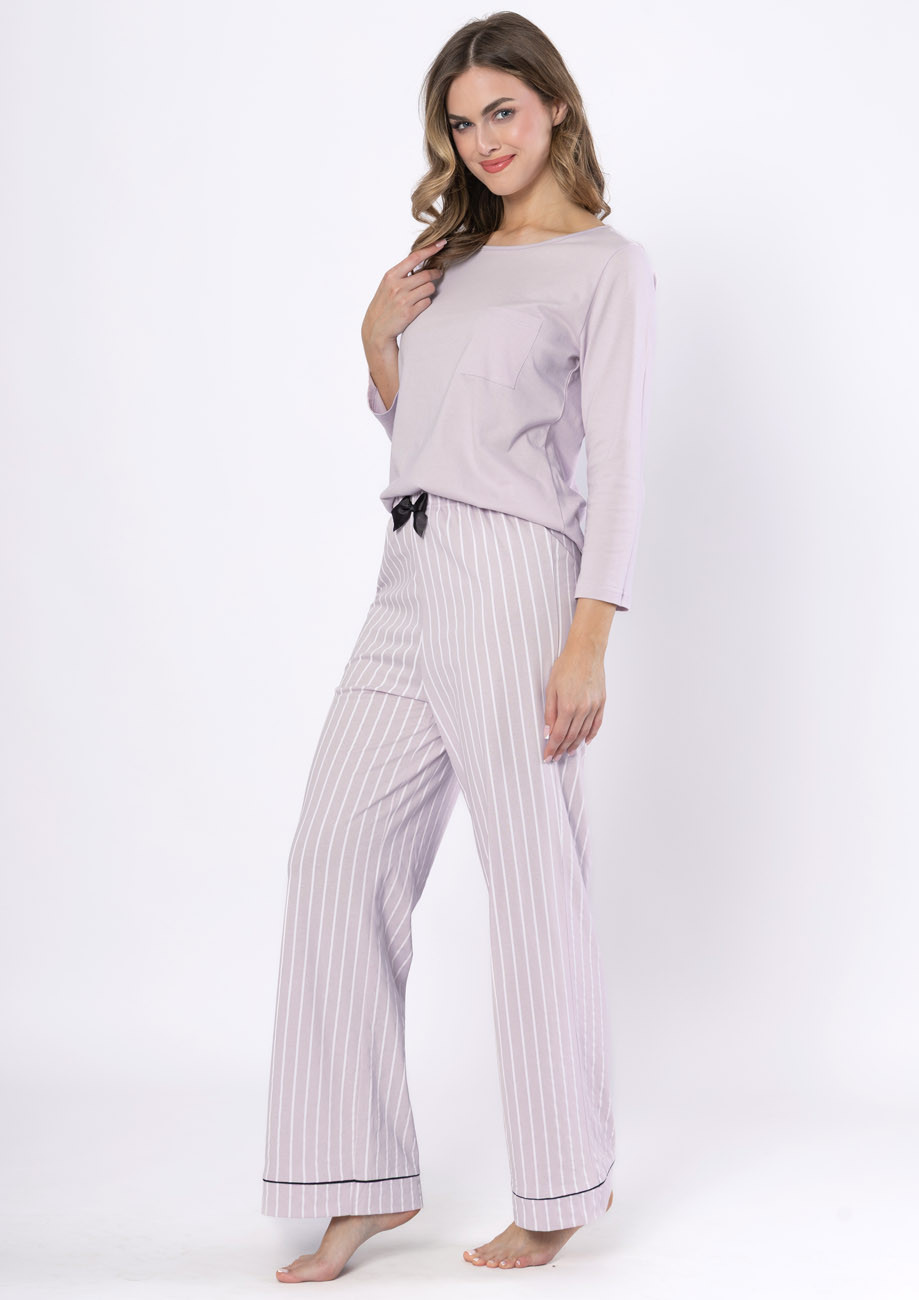 Dámske pyžamo s dlhým rukávom a dlhými nohavicami vyrobené zo 100% bavlny. Pyžamo je vyhotovené s všívanou gumou v páse nohavíc.