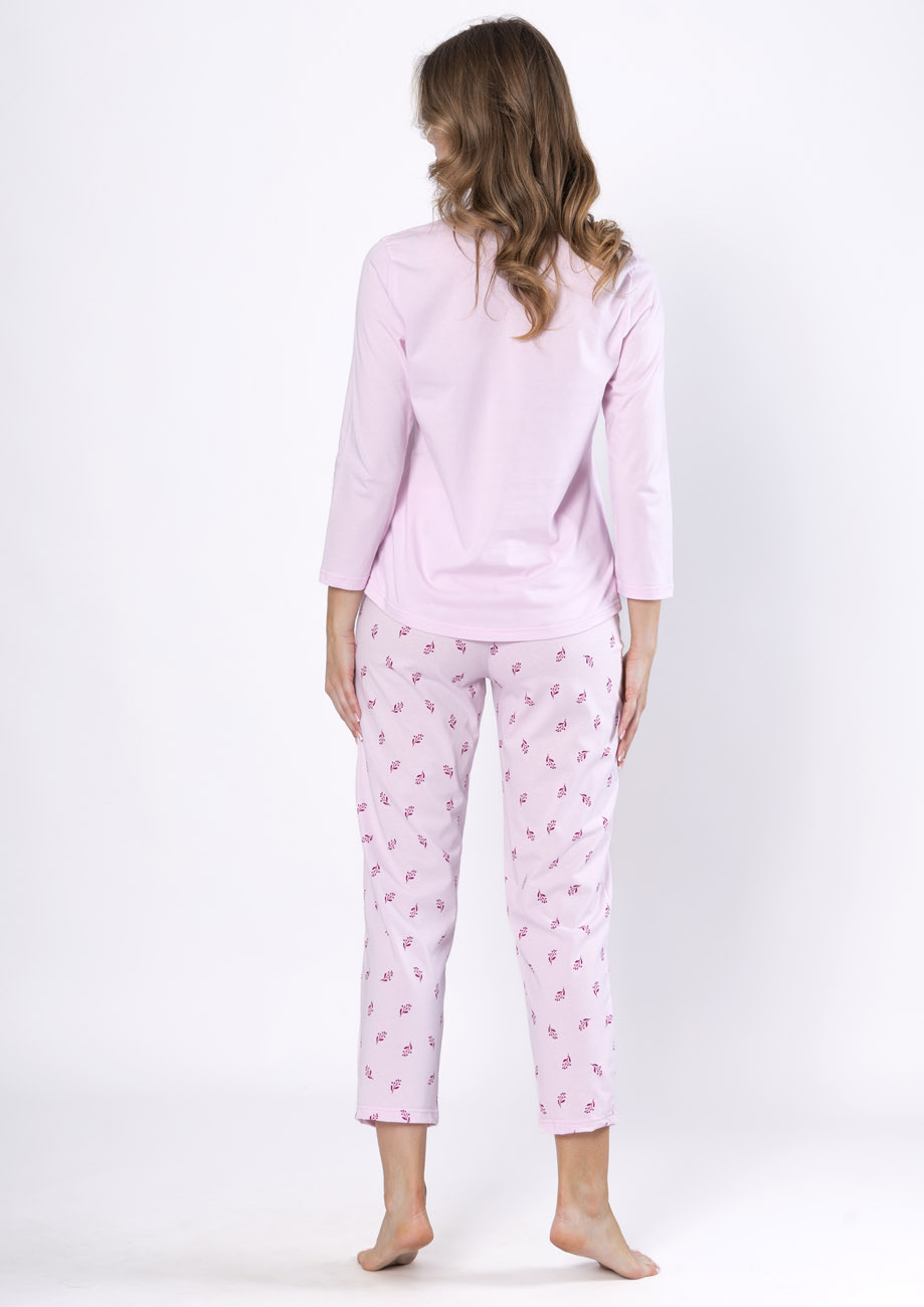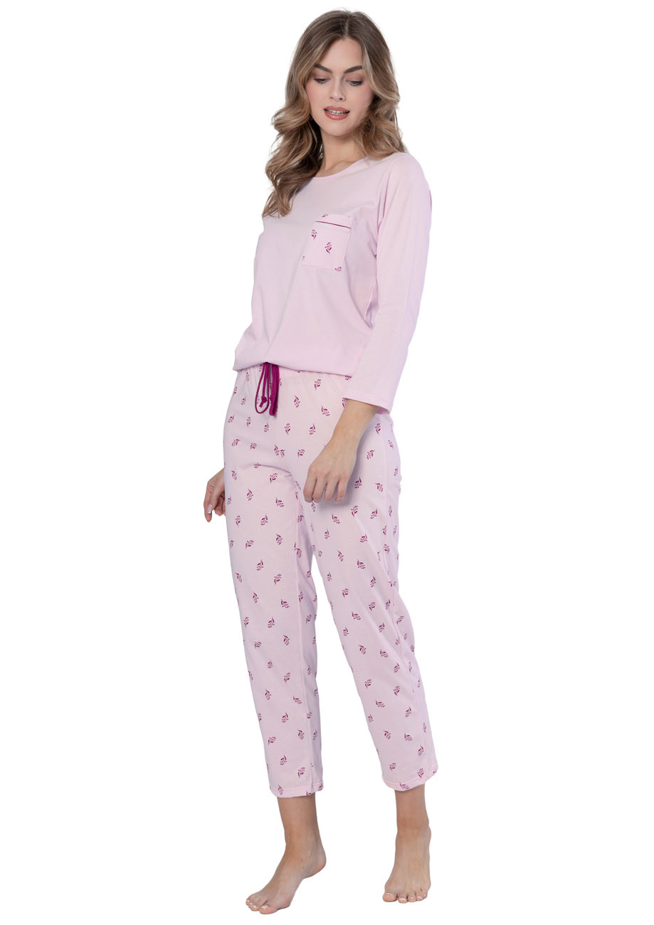Dámske pyžamo s dlhým rukávom a dlhými nohavicami vyrobené zo 100% bavlny. Pyžamo je vyhotovené s všívanou gumou v páse nohavíc.