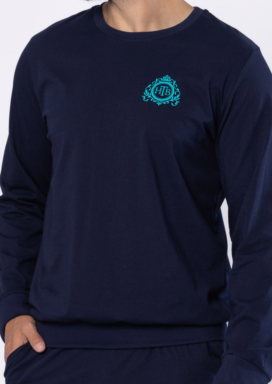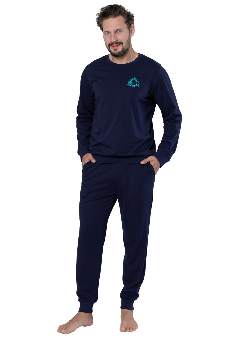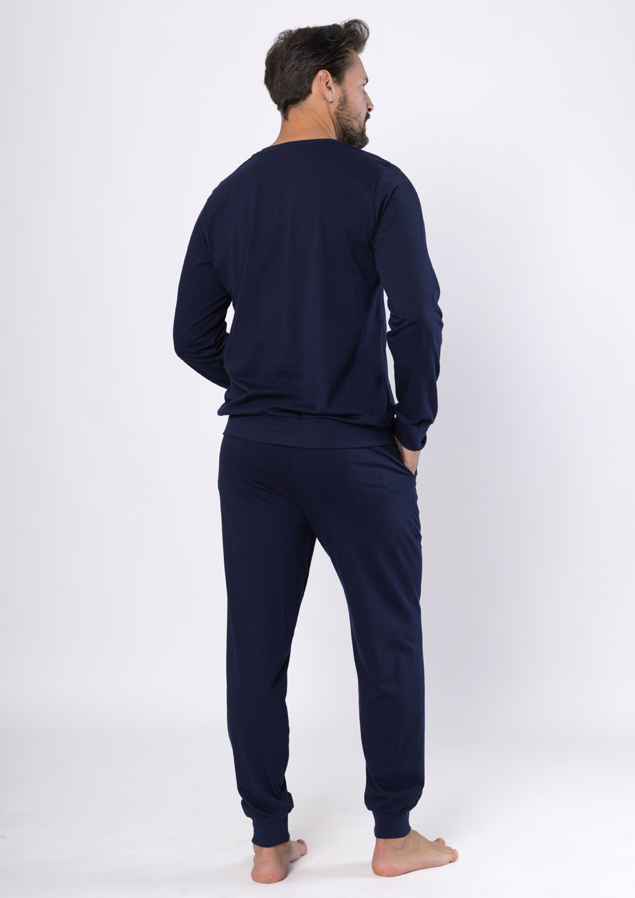 Pánske pyžamo s dlhým rukávom a dlhými nohavicami - navliekaná guma v páse nohavíc, rukávy a nohavice ukončené pružným patentom