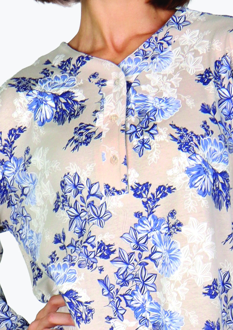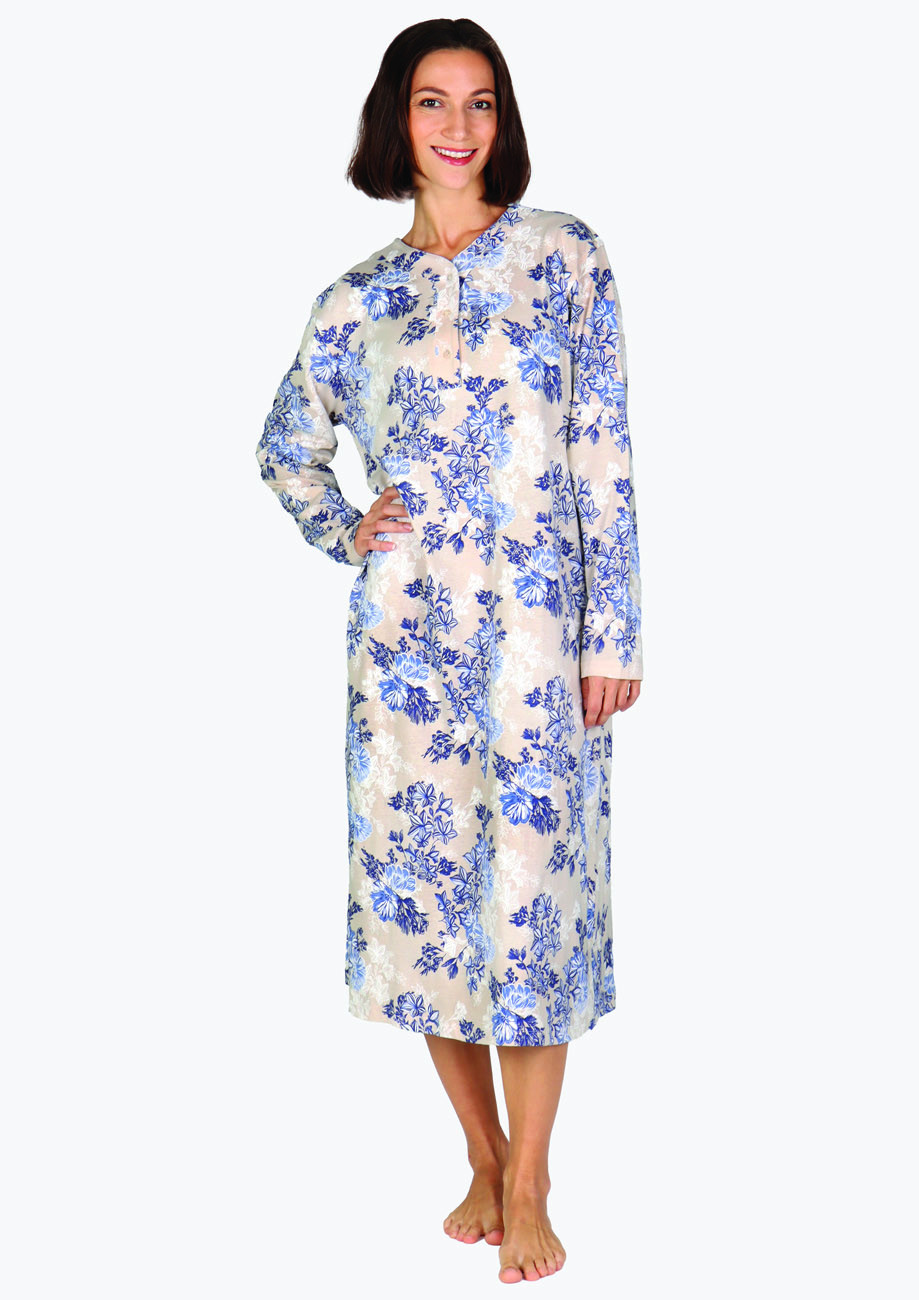 Dámska nočná košeľa s dlhým rukávom a krátkou rozopínacou légou.