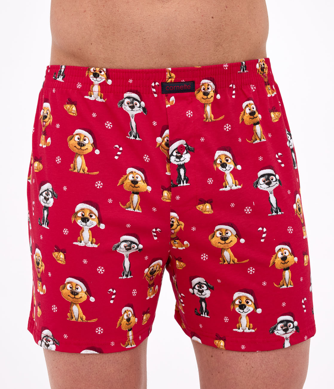 Pánske boxerky trenírkového typu so zábavným vianočným motívom vyrobené z veľmi kvalitnej 100% bavlny. Model má v páse všitú pohodlnú širokú gumu obšitú bavlneným úpletom.