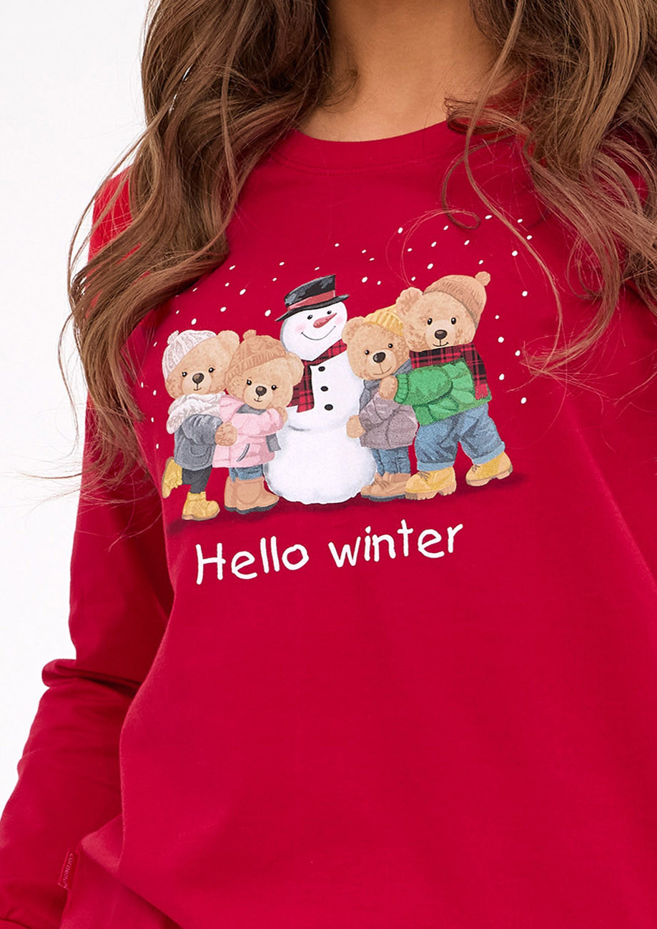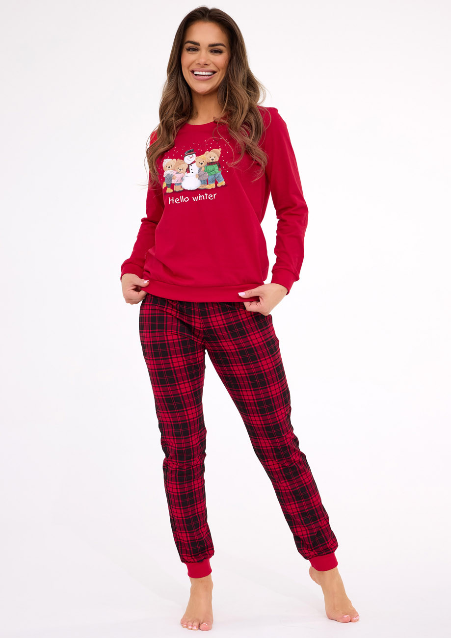 Dámske vianočné pyžamo s dlhým rukávom a dlhými nohavicami ukončé pružnými patentami. Je vyrobené zo 100% bavlneného úpletu - všívaná guma v páse. Pyžamo je súčasťou rodinnej kolekcie Winter.