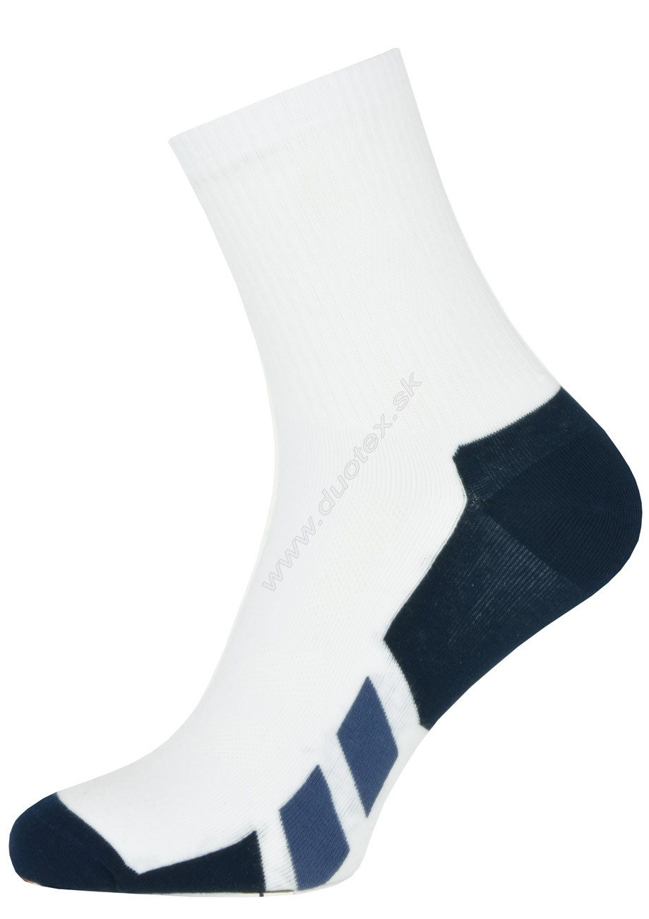 bavlnené elastické športové ponožky s vysokým elastickým rebrovaným preveseným lemom, ktorý zabezpečuje výbornú stabilitu ponožky na nohe a zvyšuje tým komfort pri nosení. S plochým švom na špičke.