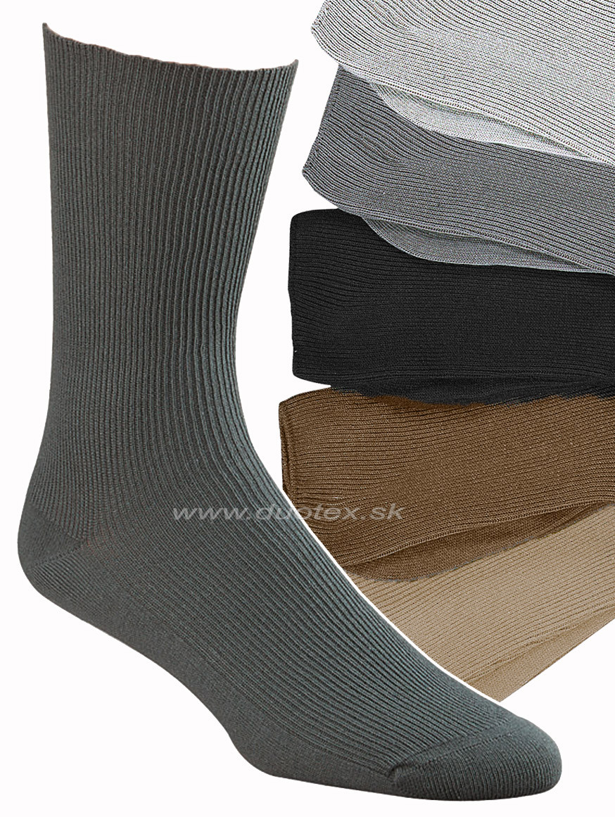 Rebrované bavlnené ponožky s vysokým pohodlným lemom bez gumičky, vhodný pre diabetikov s ručne retiazkovanou špičkou.