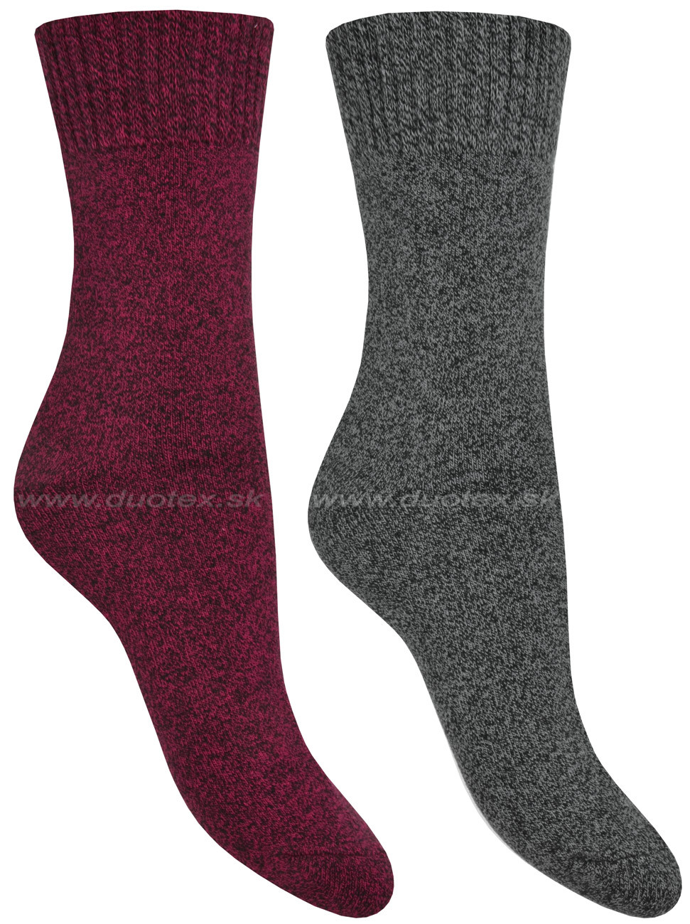 dámske teplé zimné melírované ponožky s vnútornou mäkkou jemnou froté vrstvou. Dvojpack sa skladá z dvoch párov ponožiek spojených jednou etiketou - viď obrázok.