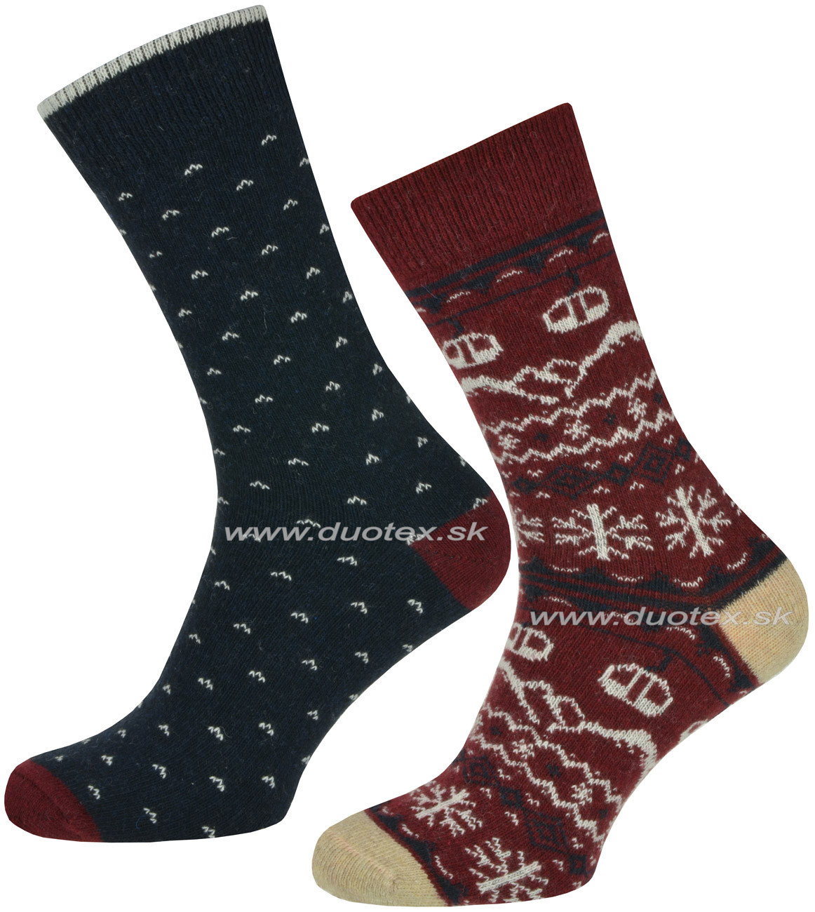 pánske zimné ponožky s prídavkom vlny. Balené po 2 páry. Dvojpack sa skladá z dvoch párov rôznych farieb - viď. obrázok.