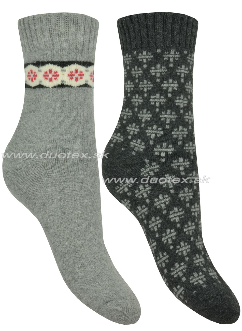 Teplé, extra mäkké zimné ponožky s podielom vlny. Dvojpack sa skladá z ponožiek dvoch rôznych vzorov aj farieb - viď obrázok.